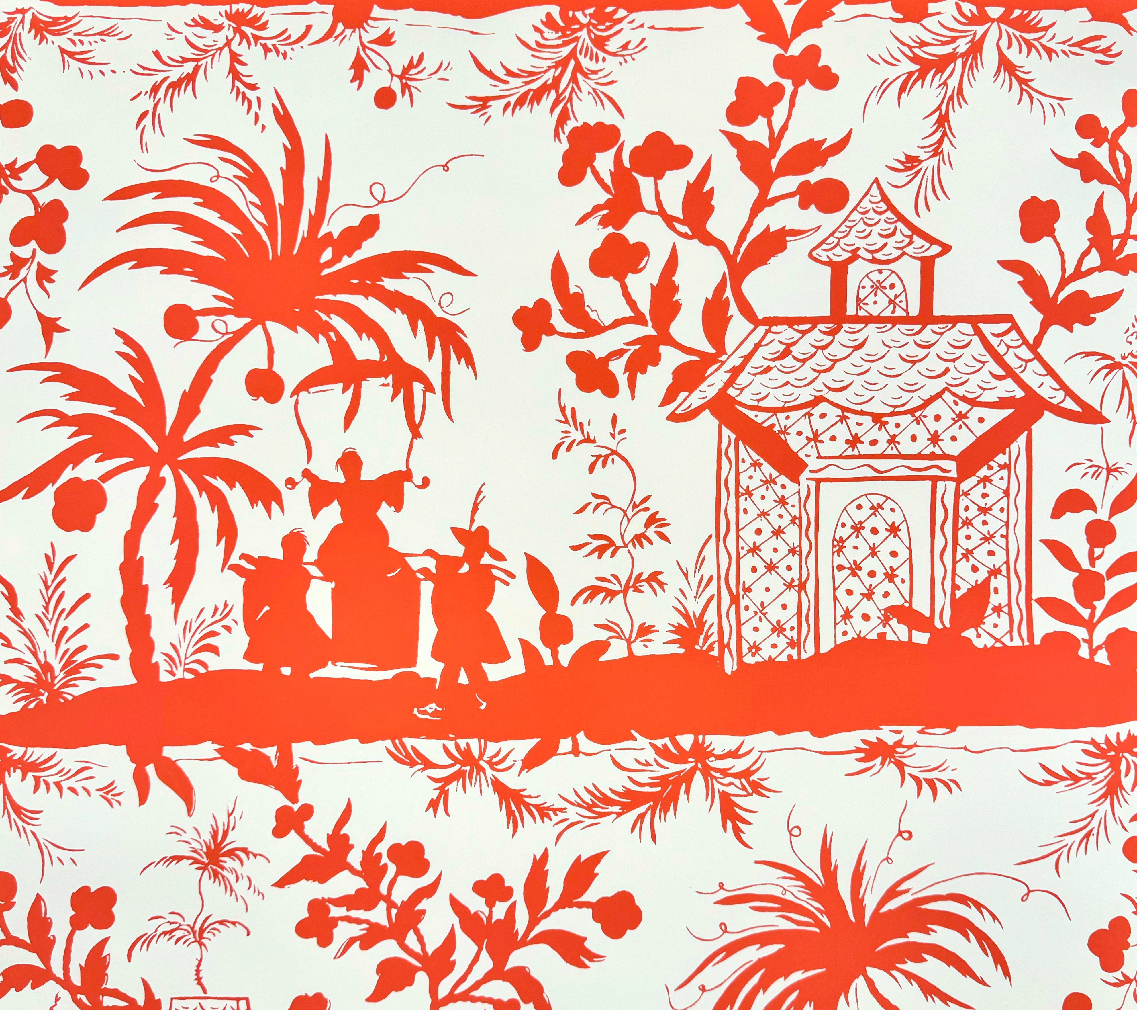 China Seas Wallpaper: Lyford Pagoda Petite - Custom Shrimp on Off White Paper (FIVE YARD MINIMUM)