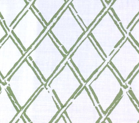 China Seas Fabric: Lyford Diamond Bamboo - Custom Jungle Green on White Belgian Linen/Cotton