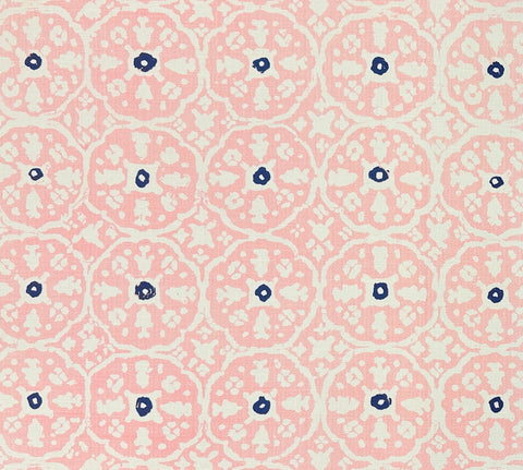 China Seas Fabric: Nitik Grande - Custom Pink / Navy on Belgian Linen / Cotton