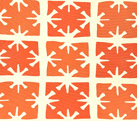 China Seas Fabric: Georgia Small Scale - Tangerine / Orange on Tinted Belgian Linen / Cotton