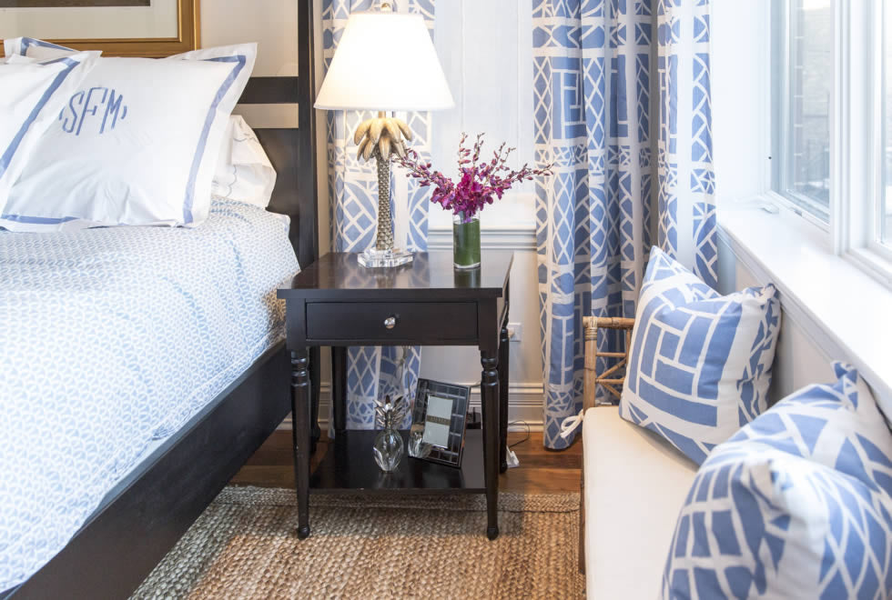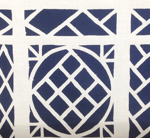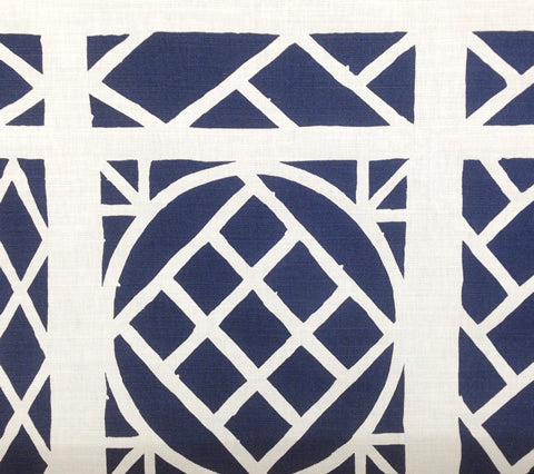 China Seas Fabric: Trellis Background - Custom Navy on Tinted Curtain-Weight Linen