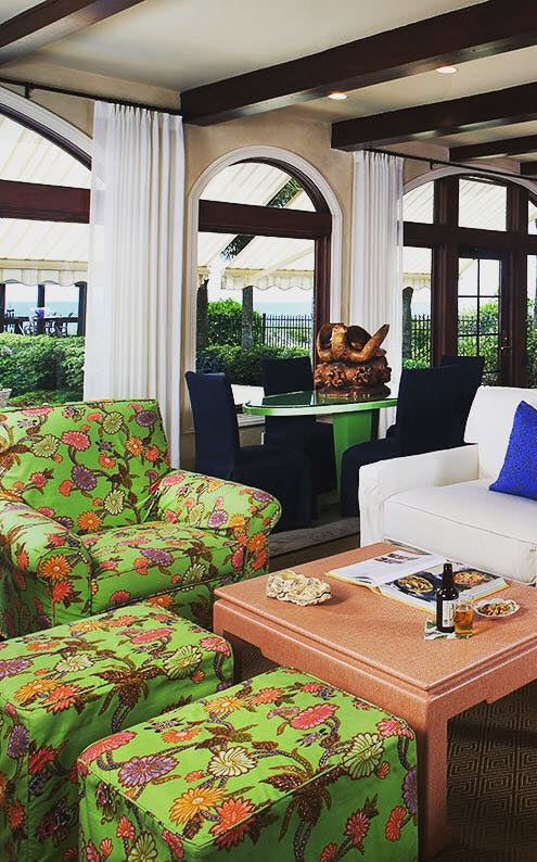 Turtle Green is not the color of an actual turtle. It's the green of a garden that's been tended obsessively - deep, saturated, the kind of green that announces itself without apology. Against the tinted ground, it creates enough contrast to read as bold without crossing into aggressive. This is the green for people who are tired of sage, tired of moss, tired of all the polite greens that don't want to commit. It pairs with the batik florals in coral and pink like it was designed by someone who understands that nature doesn't do subtle color blocking. On T-Mandarin Oyster (a performance fabric that forgives spills and small disasters), it will outlast your commitment to whatever neutral phase you're currently in.