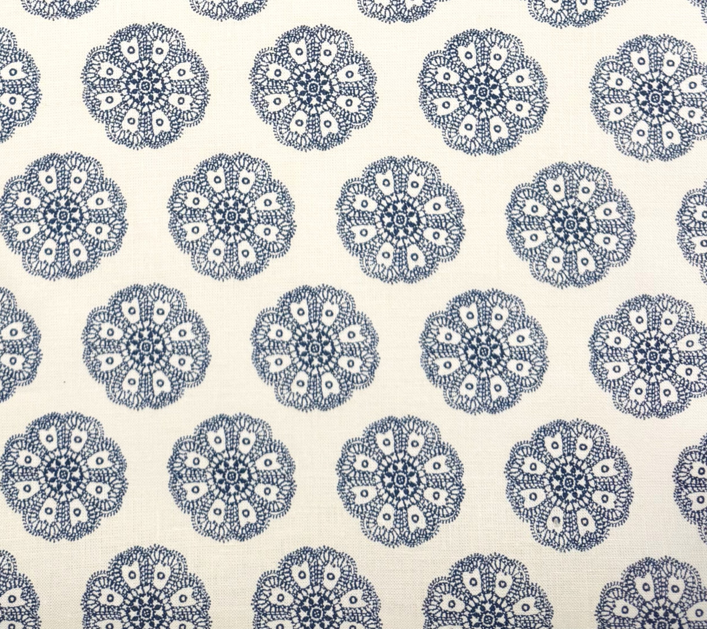 Home Couture Fabric: Jeanne Petite Fleur - Custom Navy on White 100% Belgian Linen