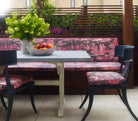 Quadrille Fabric: Paradise Garden - Turquoise / Brown on Tinted Belgian Linen