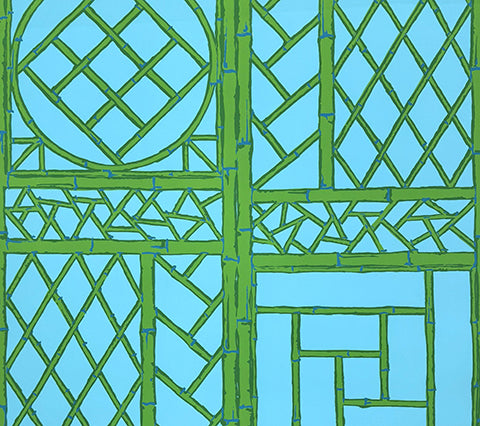 China Seas Wallpaper: Lyford Trellis - Custom Turquoise / Green on Wallpaper (FIVE YARD MINIMUM)