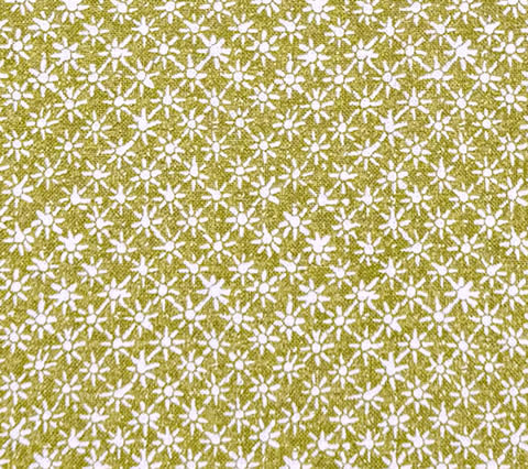 China Seas Fabric: Balinese Star - Custom New Green on Cream Linen