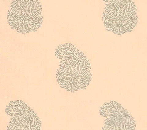 China Seas Fabric: Bangalore Paisley - Custom Silver on Light Pink 100% Silk Shantung