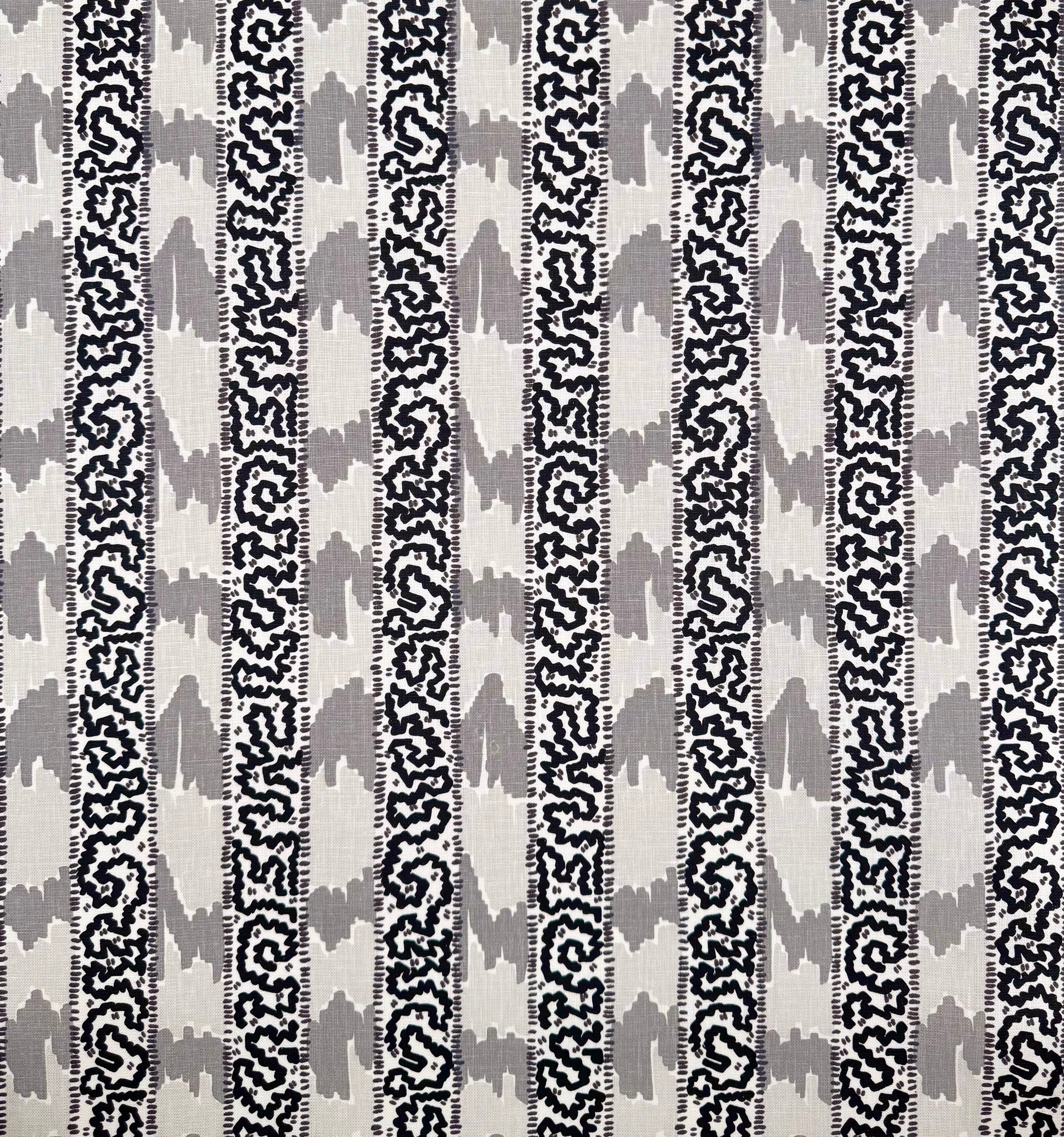 China Seas Fabric: Bijou Stripe - Custom Grey / Charcoal / Black on Tinted 100% Linen