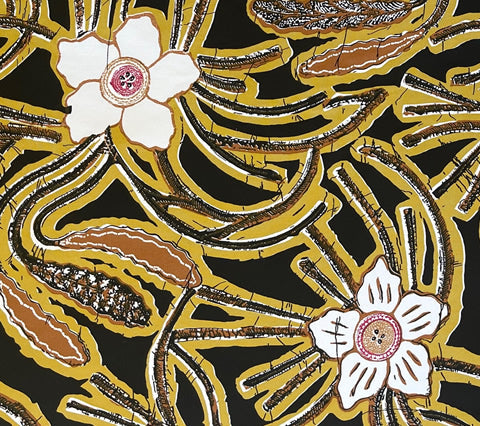 China Seas Fabric: Bunga Print - Custom Black Multi on Cotton Sateen