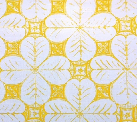 China Seas Fabric: China Flower - Custom Yellow on White Belgian Linen / Cotton