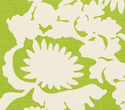 China Seas Fabric: Flora Background - Custom Jungle Green on Tinted Belgian Linen / Cotton