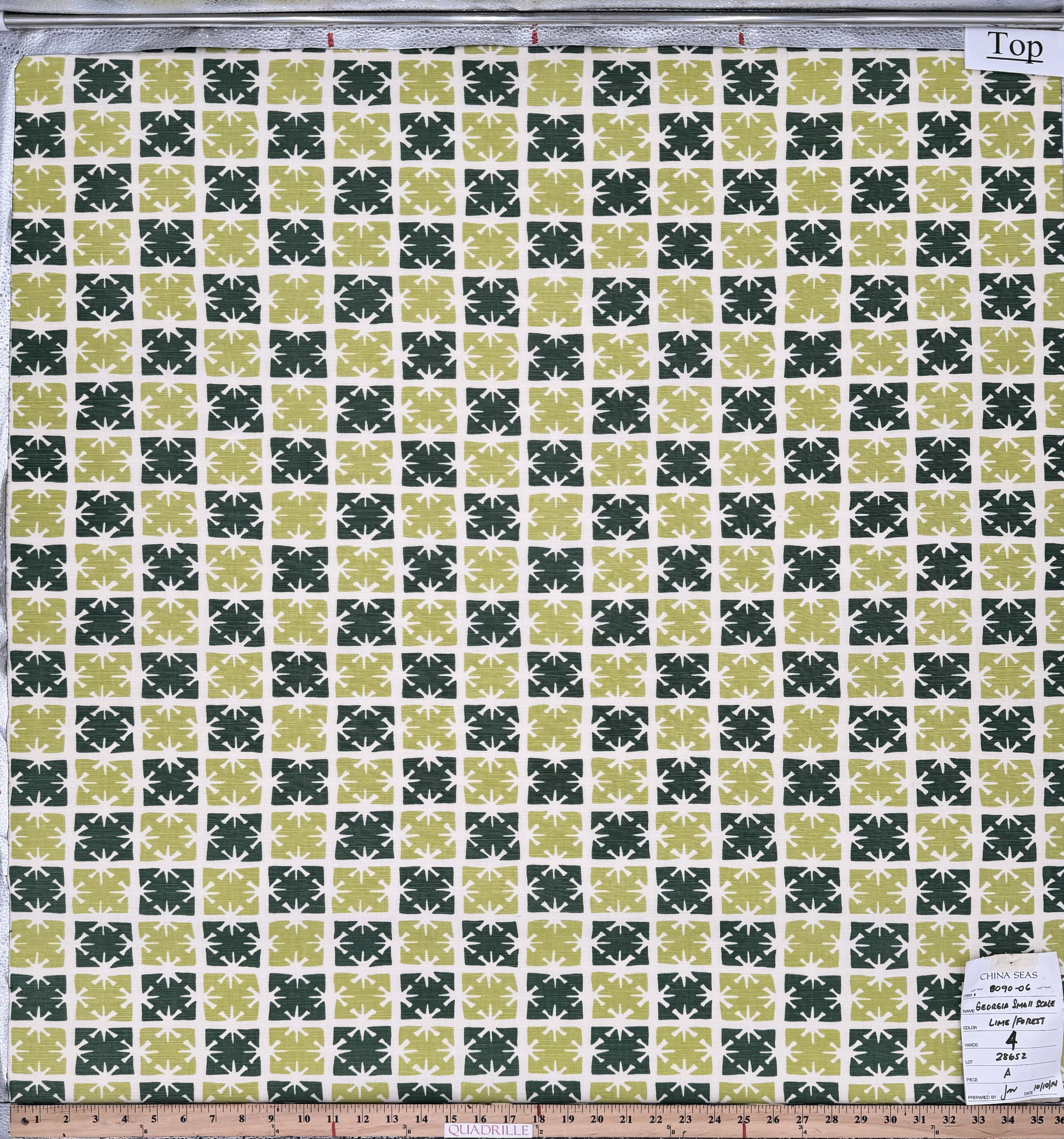 China Seas Print: Georgia Small Scale - Custom Lime / Forest Green on Tinted Belgian L:inen / Cotton