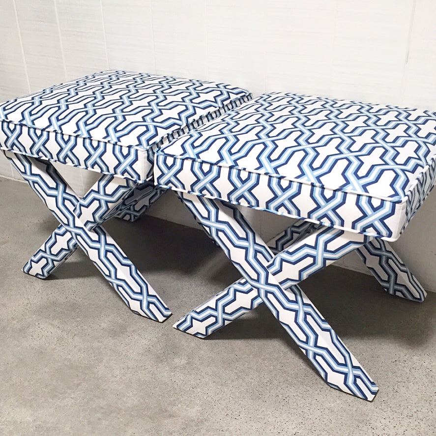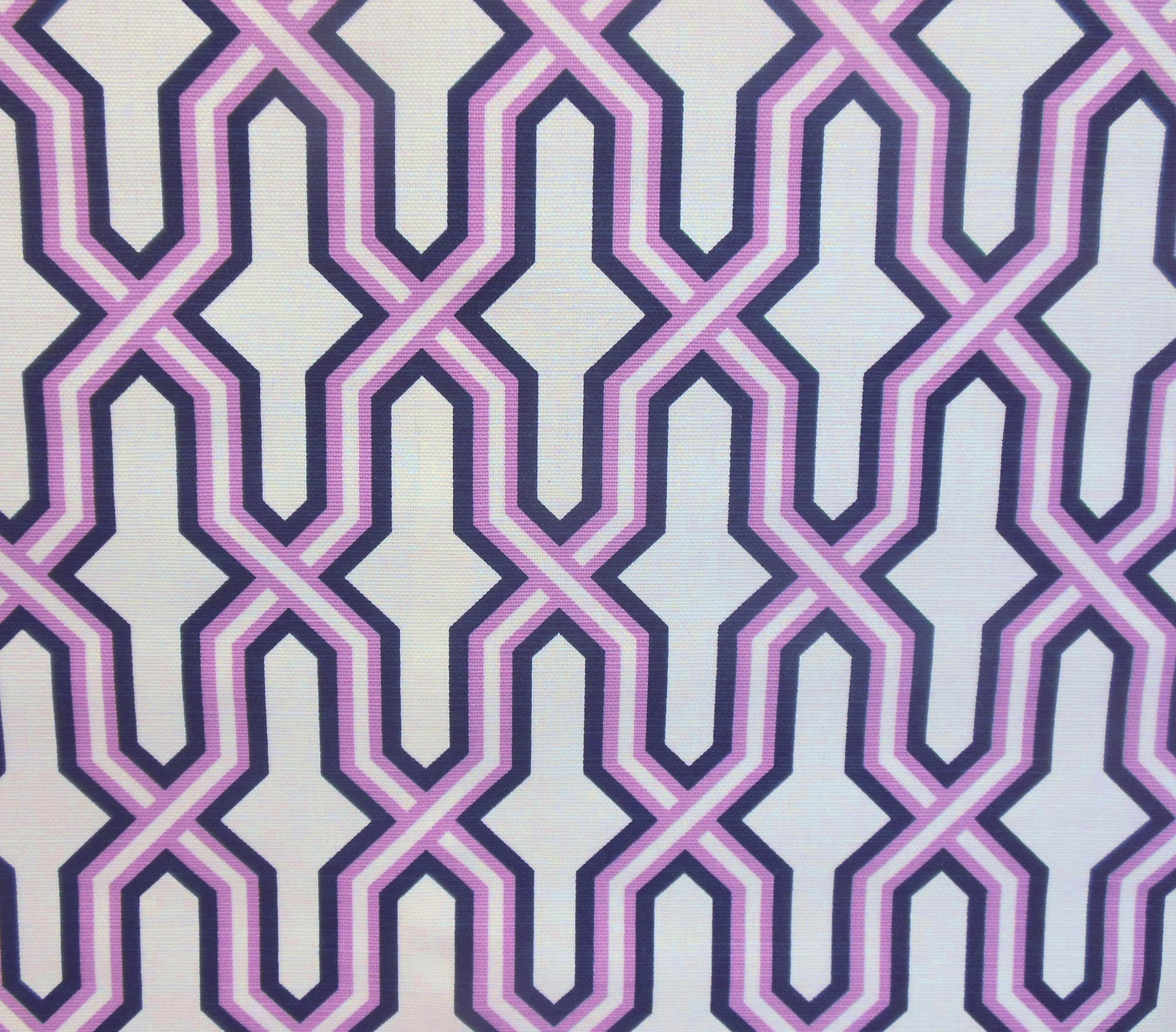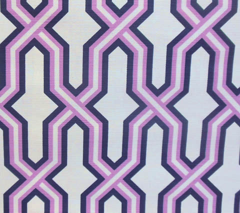 China Seas Fabric: Gorrivan Fretwork - Custom Lilac / Navy on Tinted Linen / Cotton