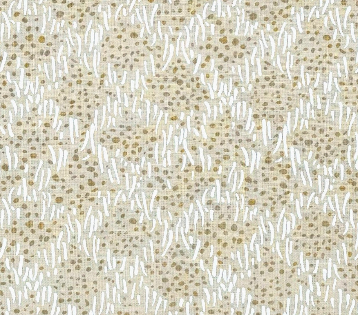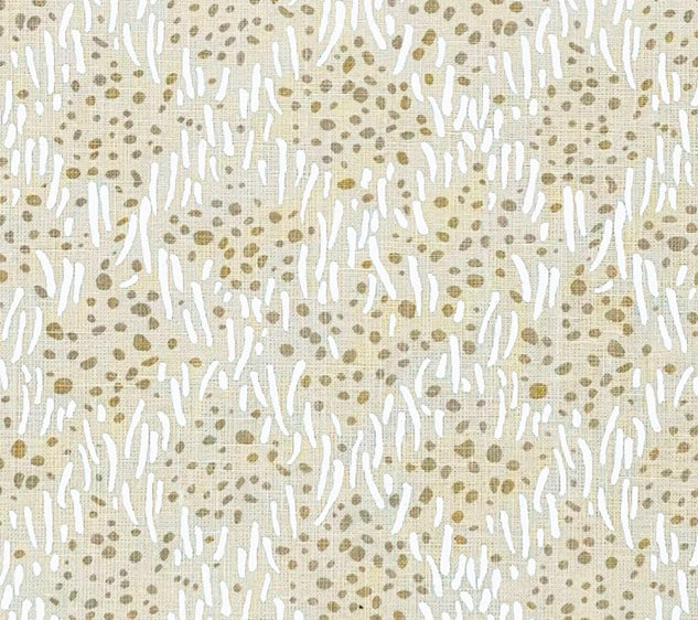 China Seas Fabric: Trilby - White with Custom Taupe Dots on Tan 100% Linen