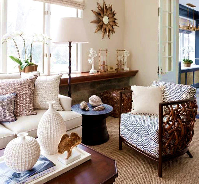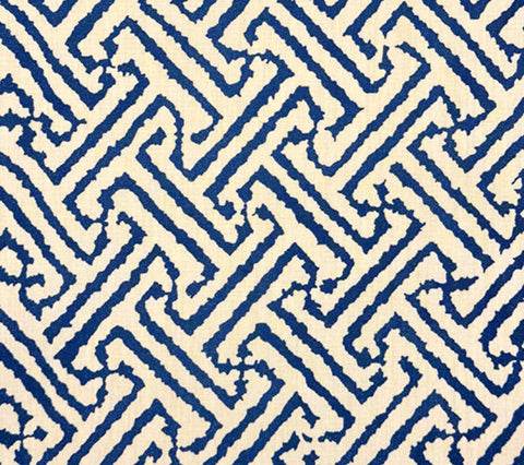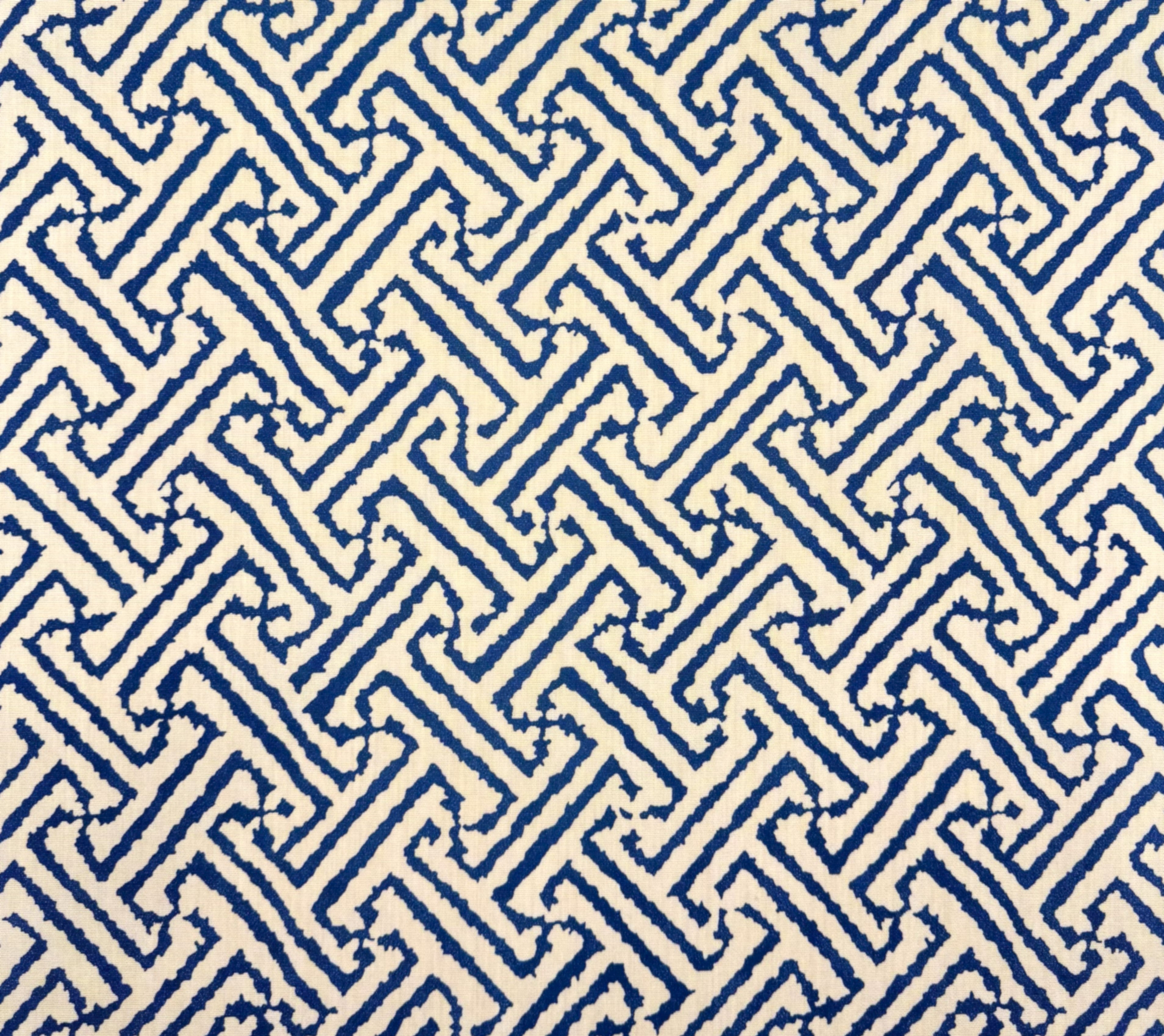 I am Java Grande, and I did not get this name by being modest. Six-inch repeat, 52 inches wide, navy on vellum - a geometry so confident it doesn't need to explain itself. Interlocking, angular, relentless in the best possible way. The kind of pattern that looks better the more of it there is.