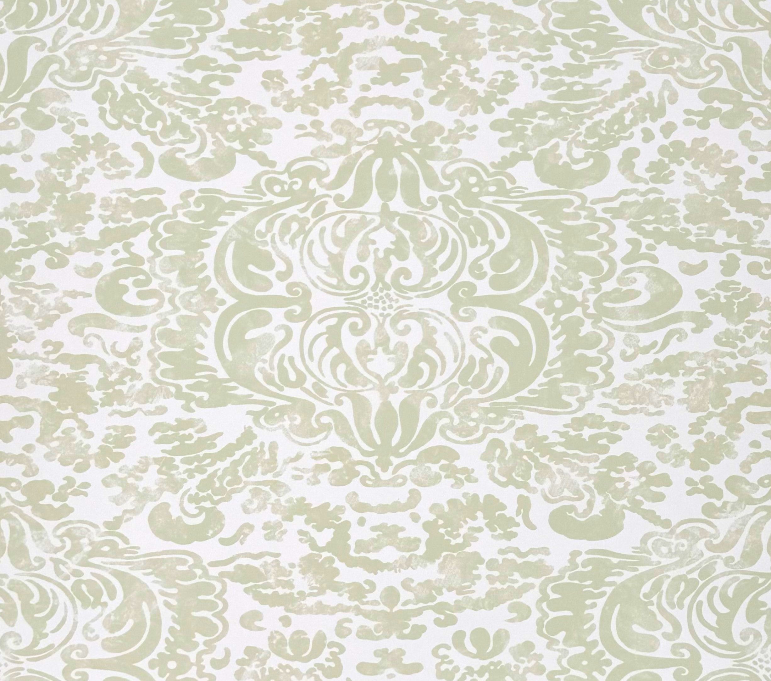 A free-flowing, antiqued damask print. Perfect for traditional or transitional styles.