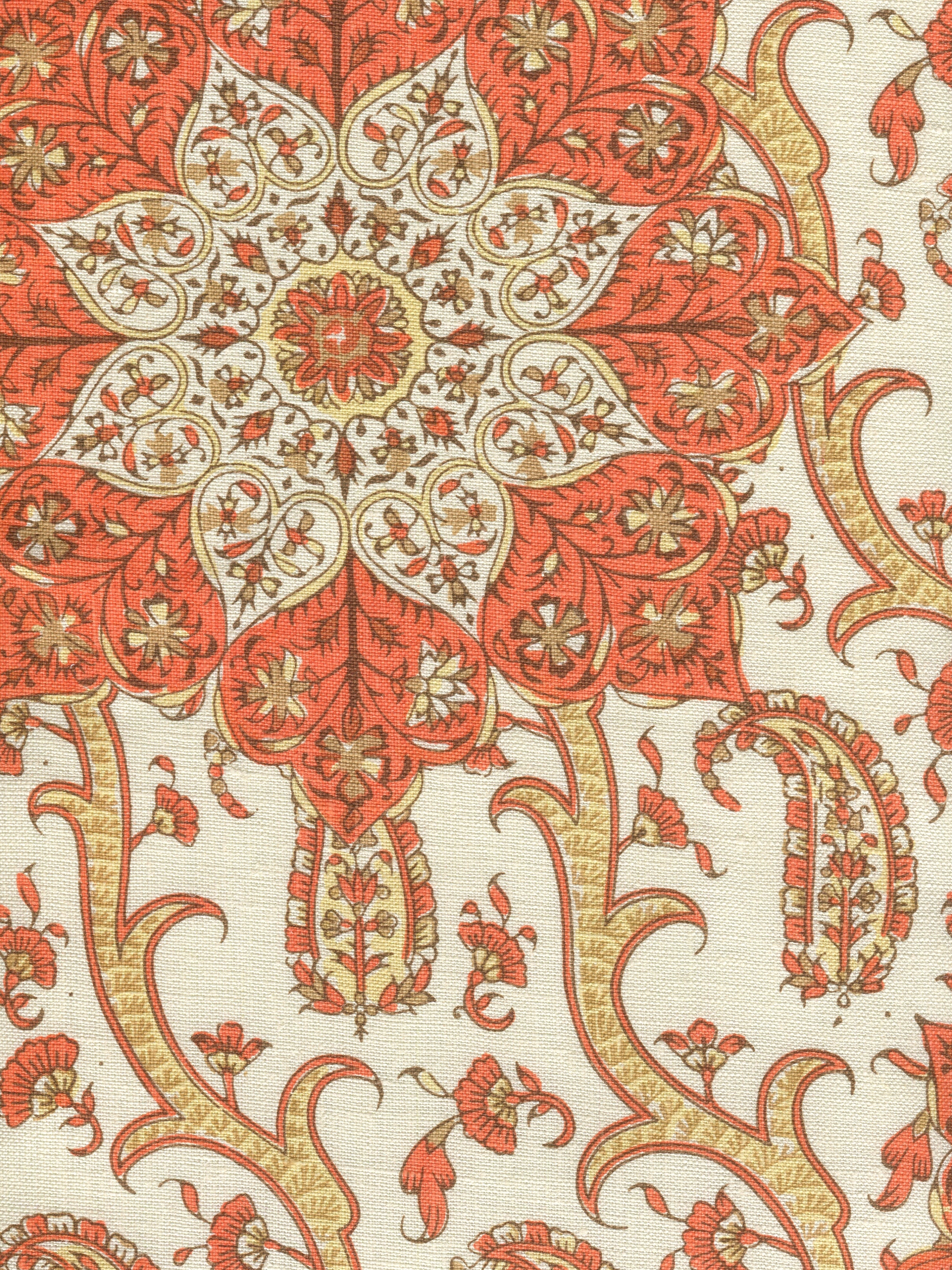 Home Couture Fabric: Kashmir Exotique - Custom Multi Oranges on Cream 100% Irish Linen (Soft, washed)