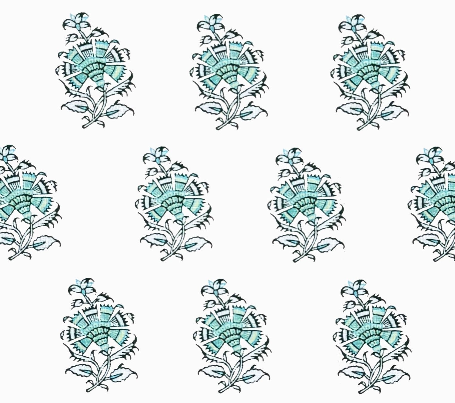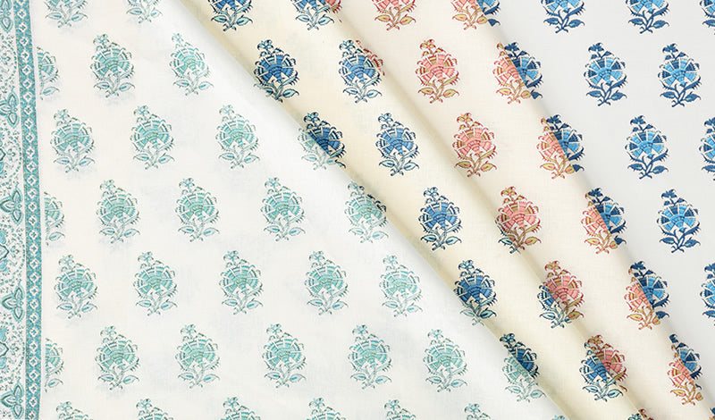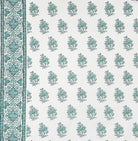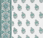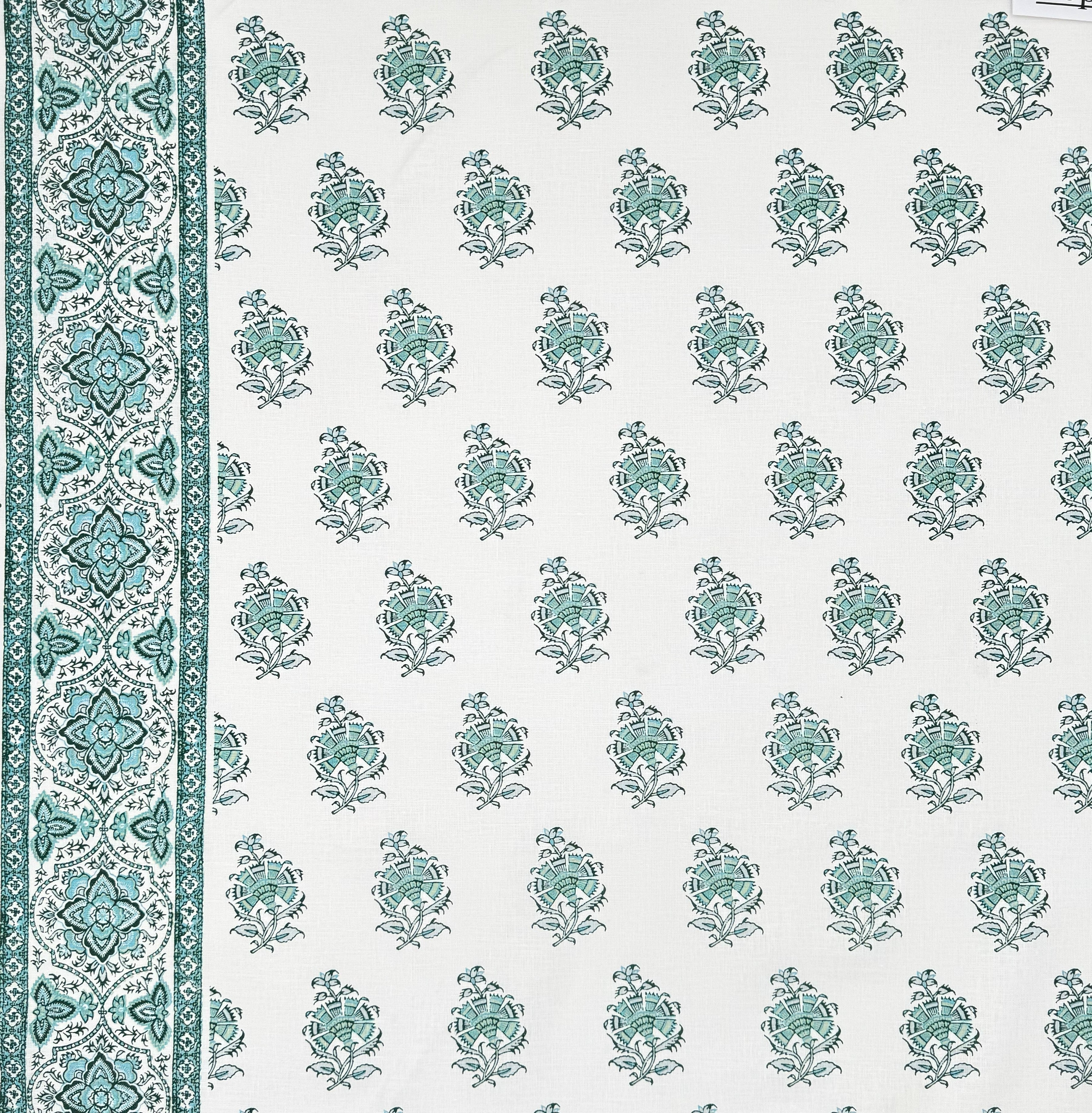 Home Couture Fabric: Persian Flower with Border - Custom Multi Aquas on White 100% Linen