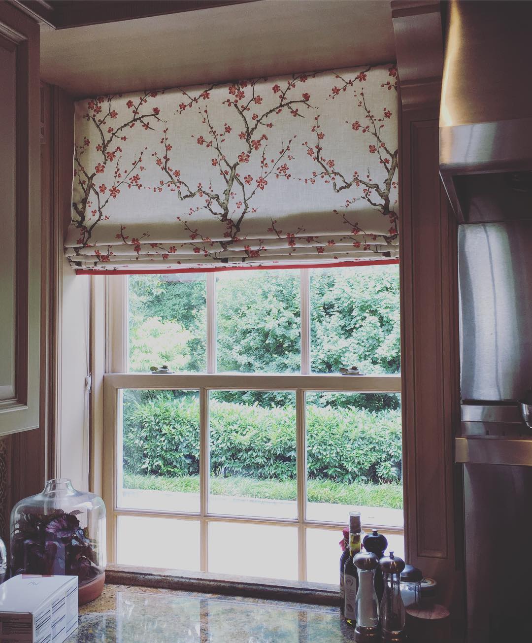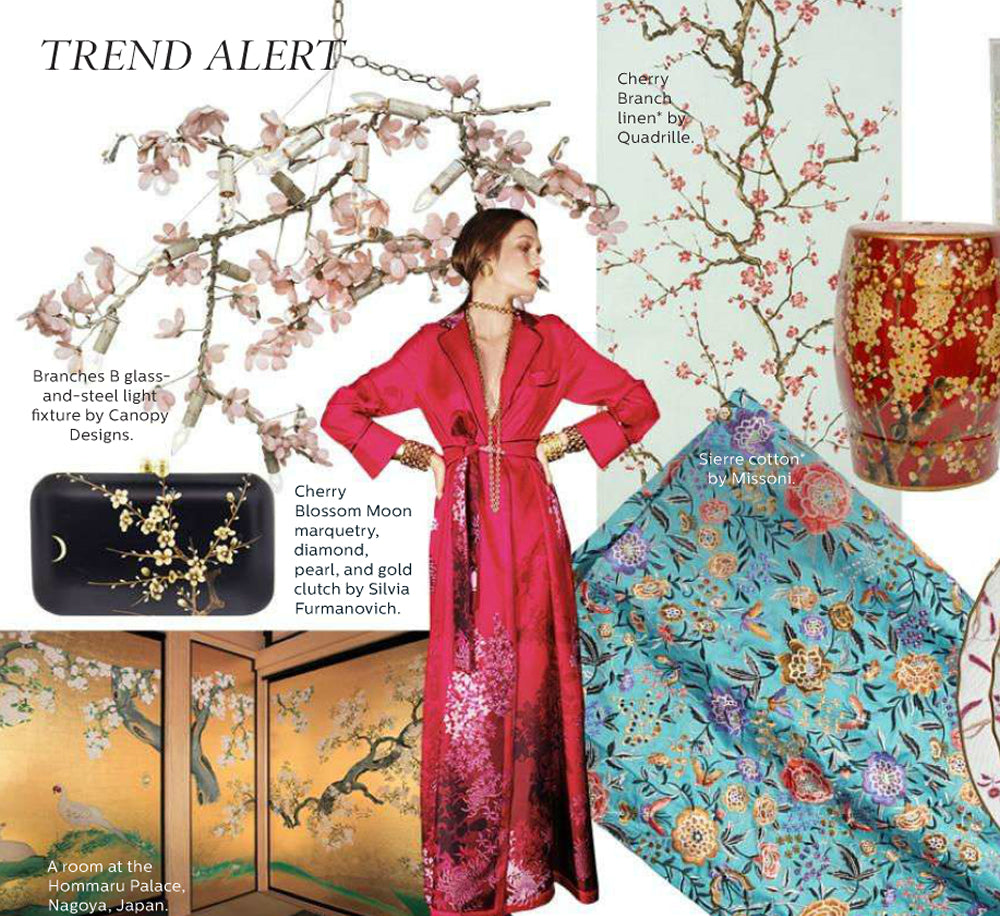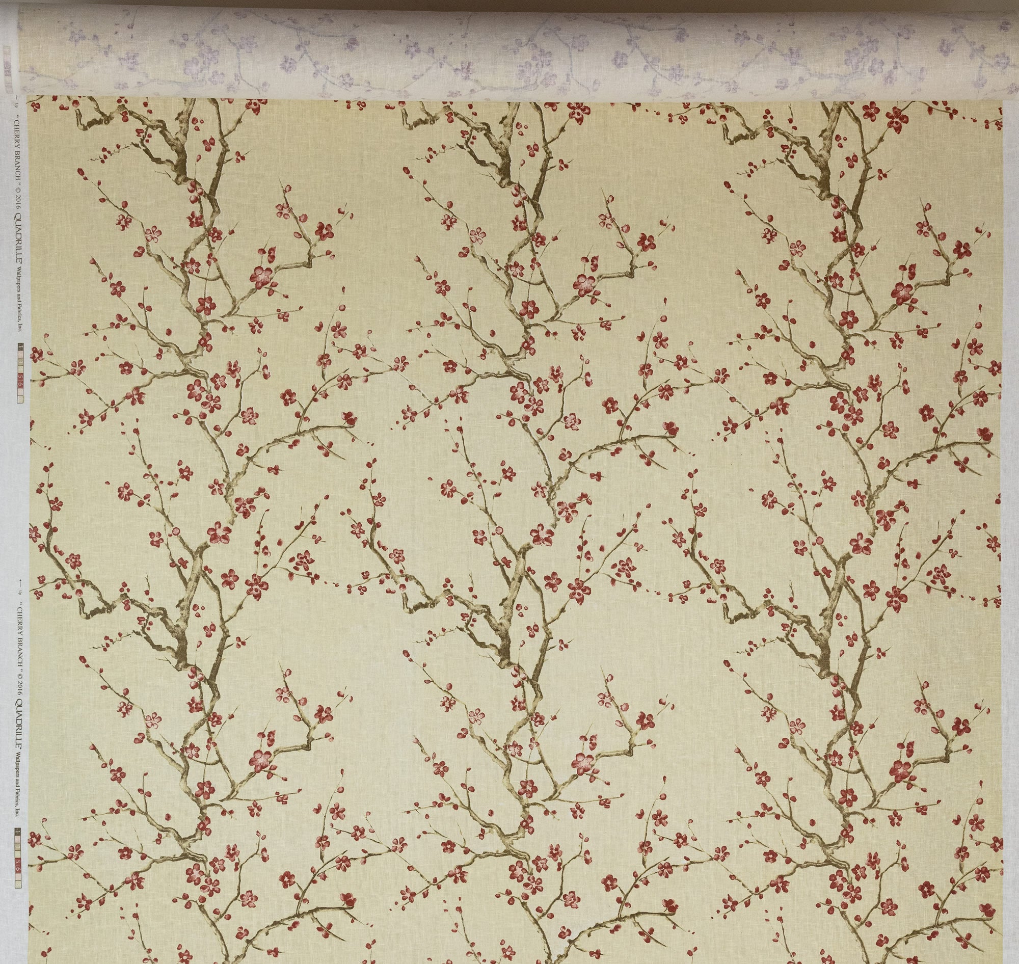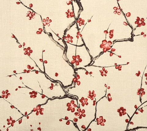 Quadrille Fabric: Cherry Branch - Custom Brown, Pink, Taupe on Cream 100% Linen