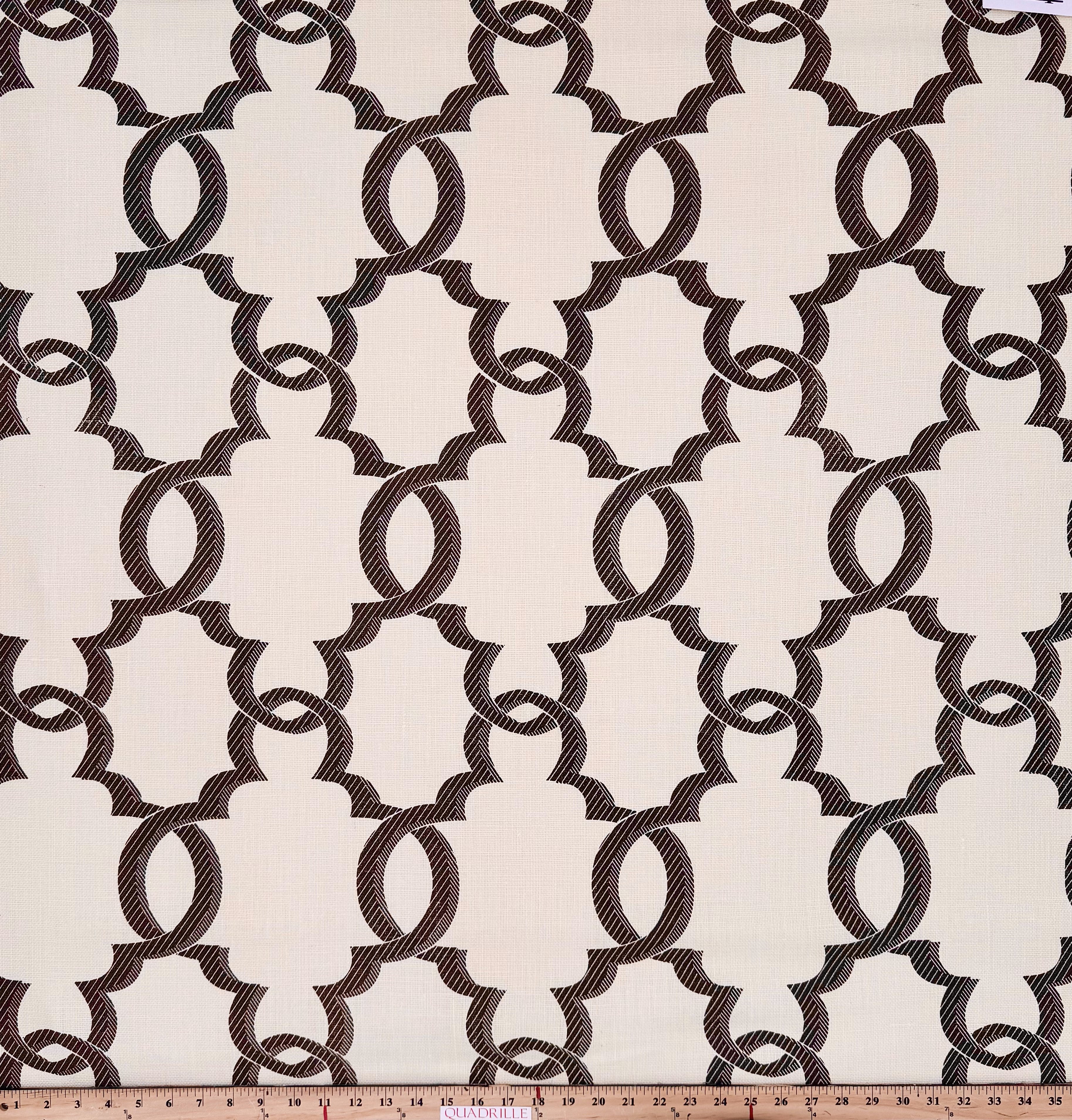 Quadrille Fabric: El Cid - Custom Basketweave Brown on Oyster
