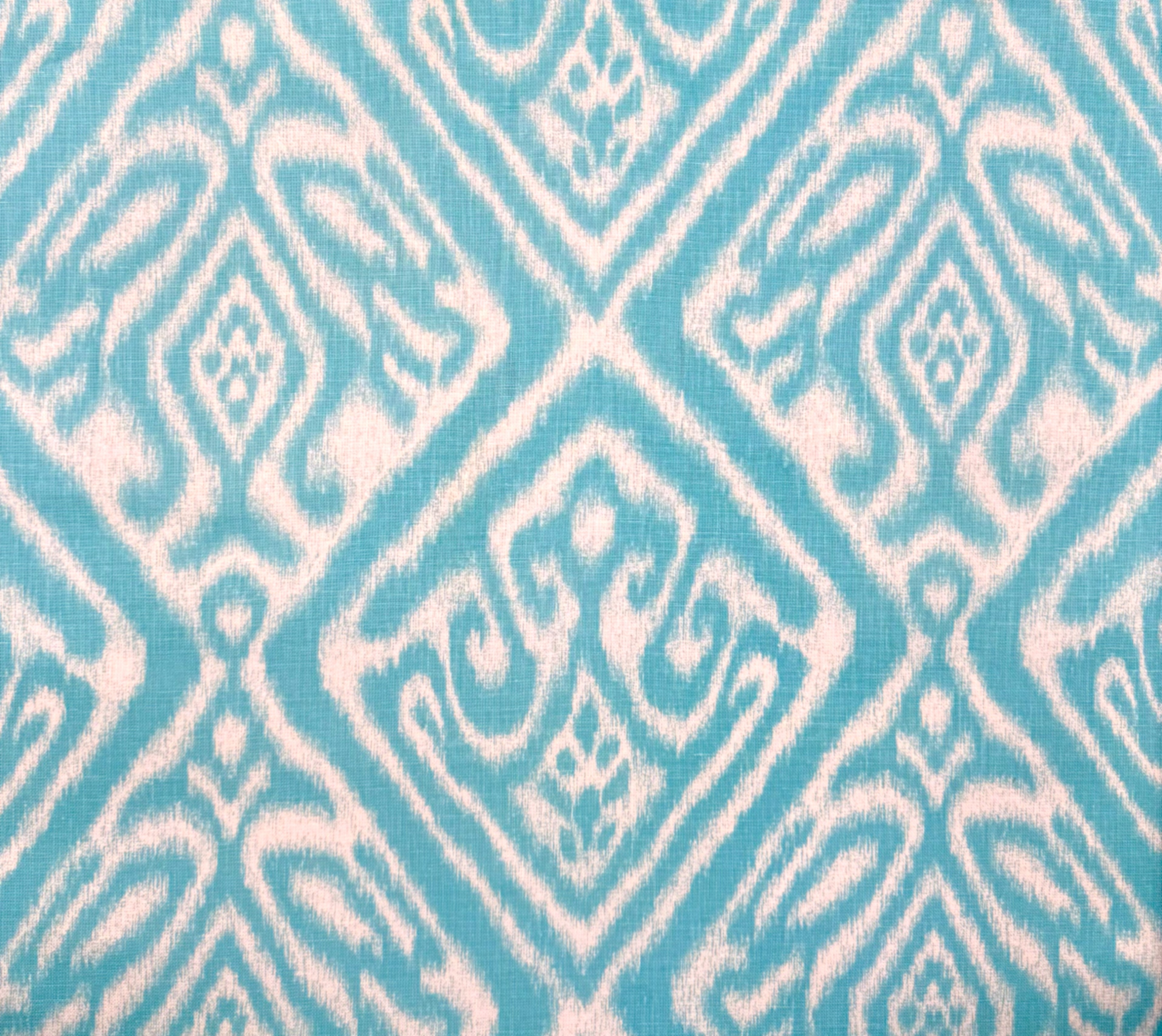 Quadrille Fabric: Ishim Ikat Reverse - Custom Turquoise on White 100% Linen