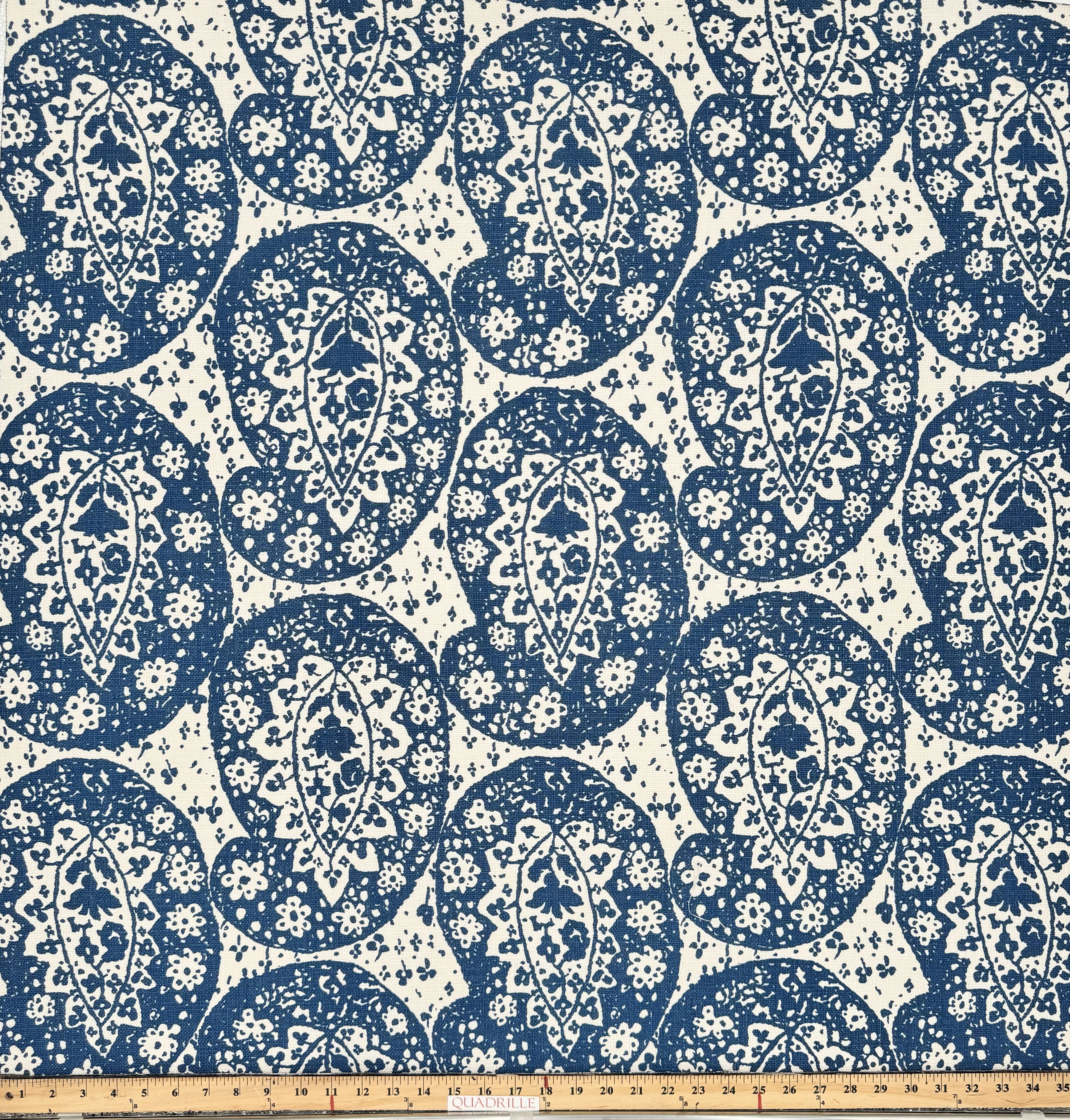 Quadrille Fabric: Joel's Paisley - Custom New Navy on Oyster Upholstery Weight Linen