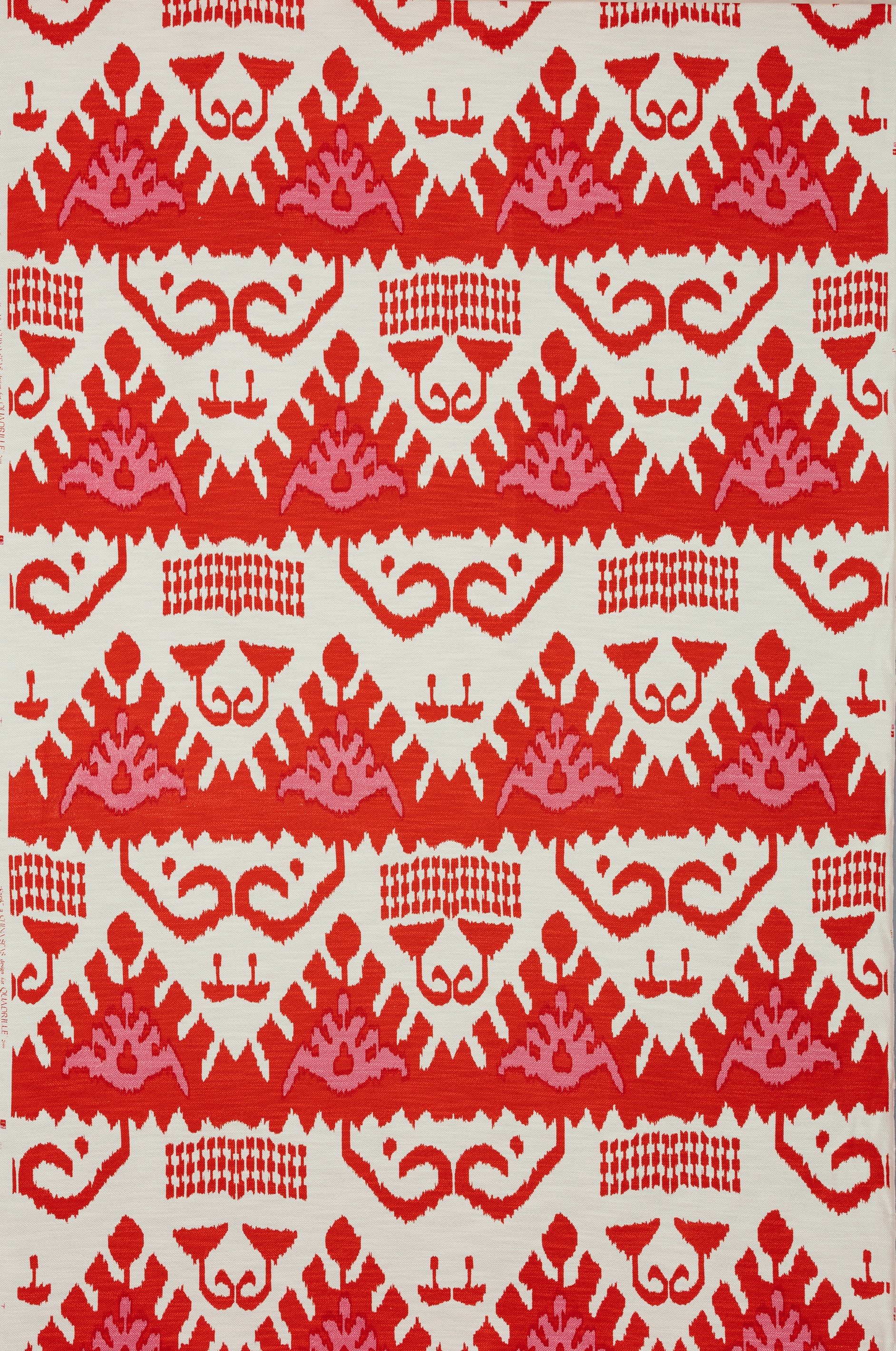 Quadrille Fabric: Kazak - Custom Orange / Pink on Natural Westover