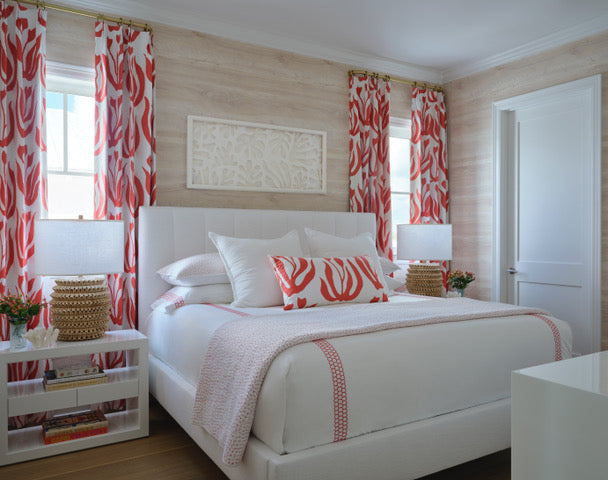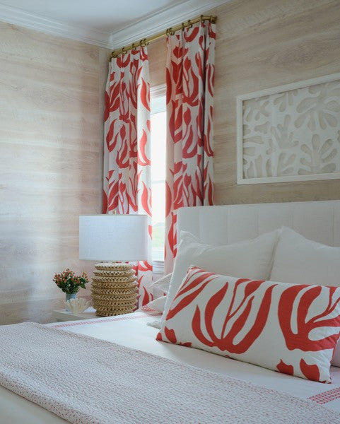 Quadrille Fabric: Lulu DK Pablo Large Scale - Custom Coral on White Belgian Linen / Cotton