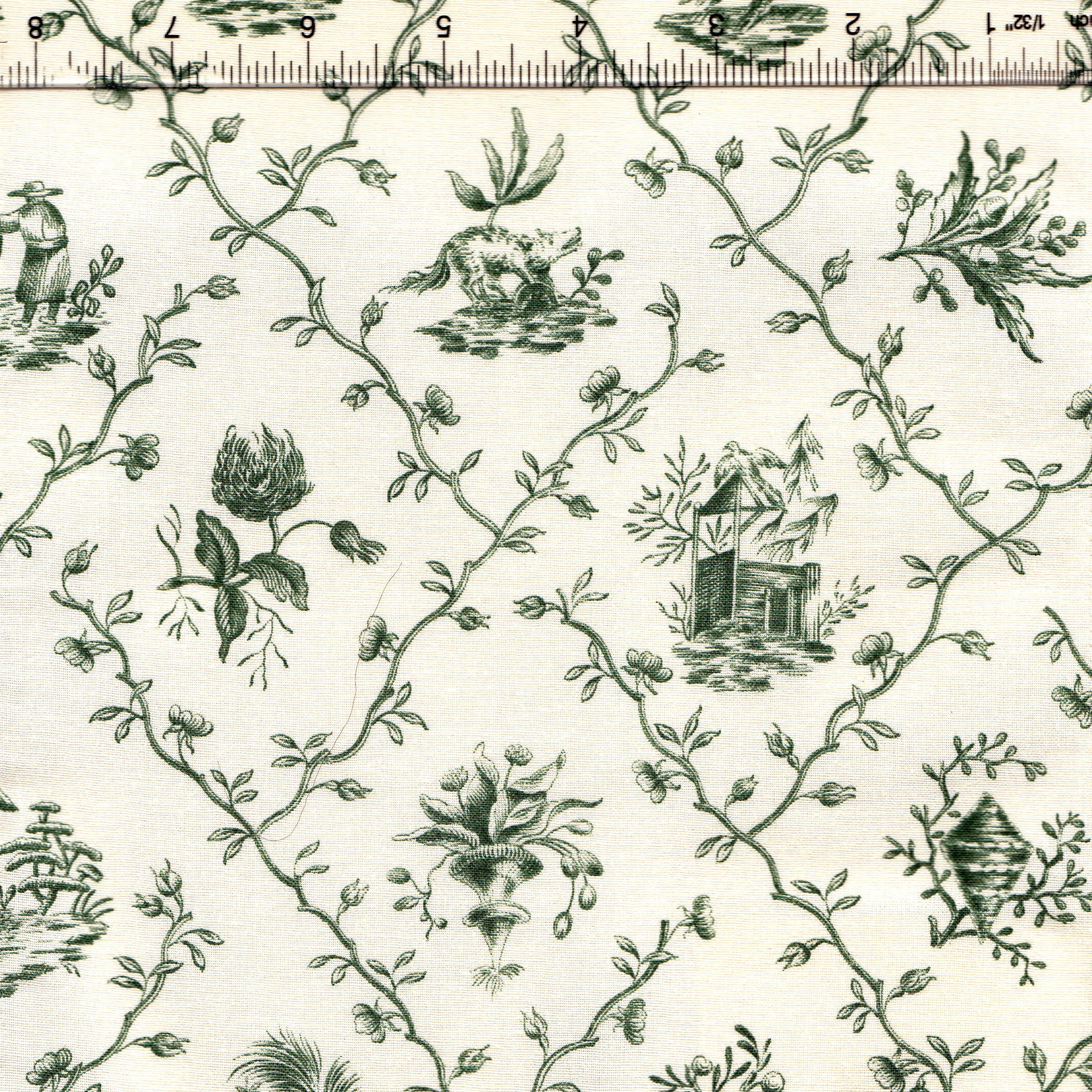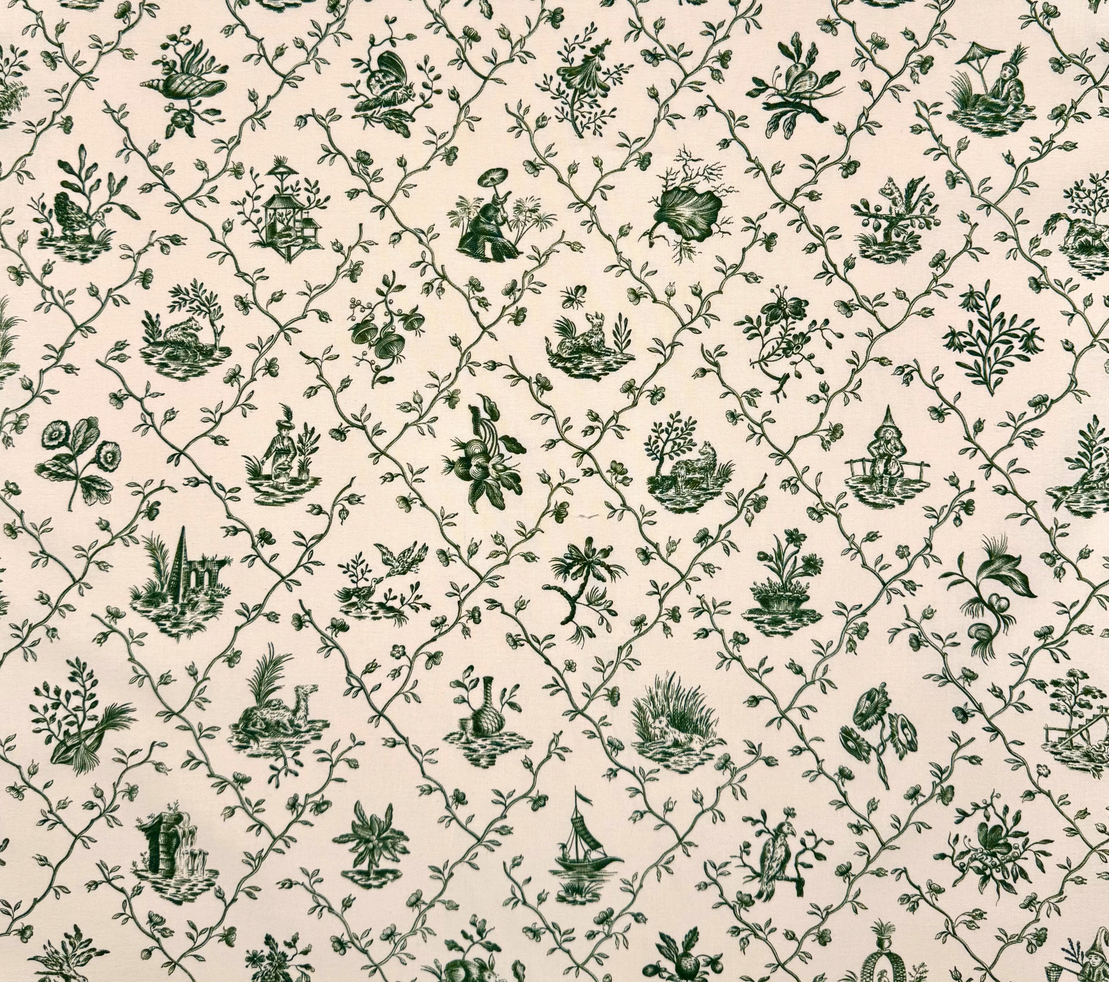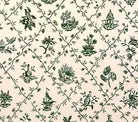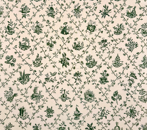 Quadrille Fabric: Pillement Toile - Vert (Green) on Tinted 100% Cotton - Imported from France