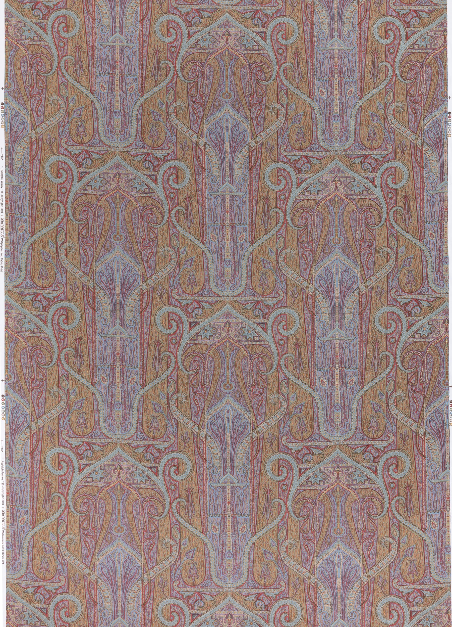 Quadrille Fabric: Rudolfo Paisley - Custom Multi Rouge / Turquoise on Italian Linen / Cotton