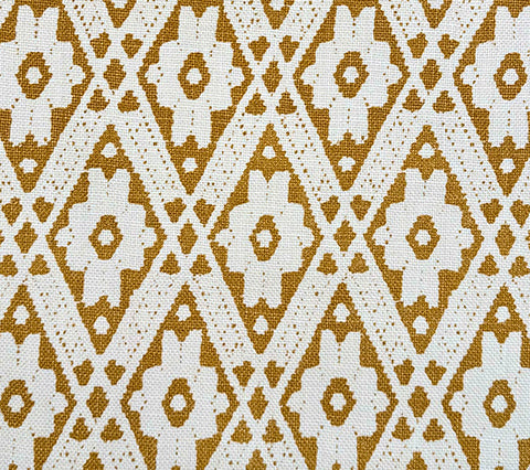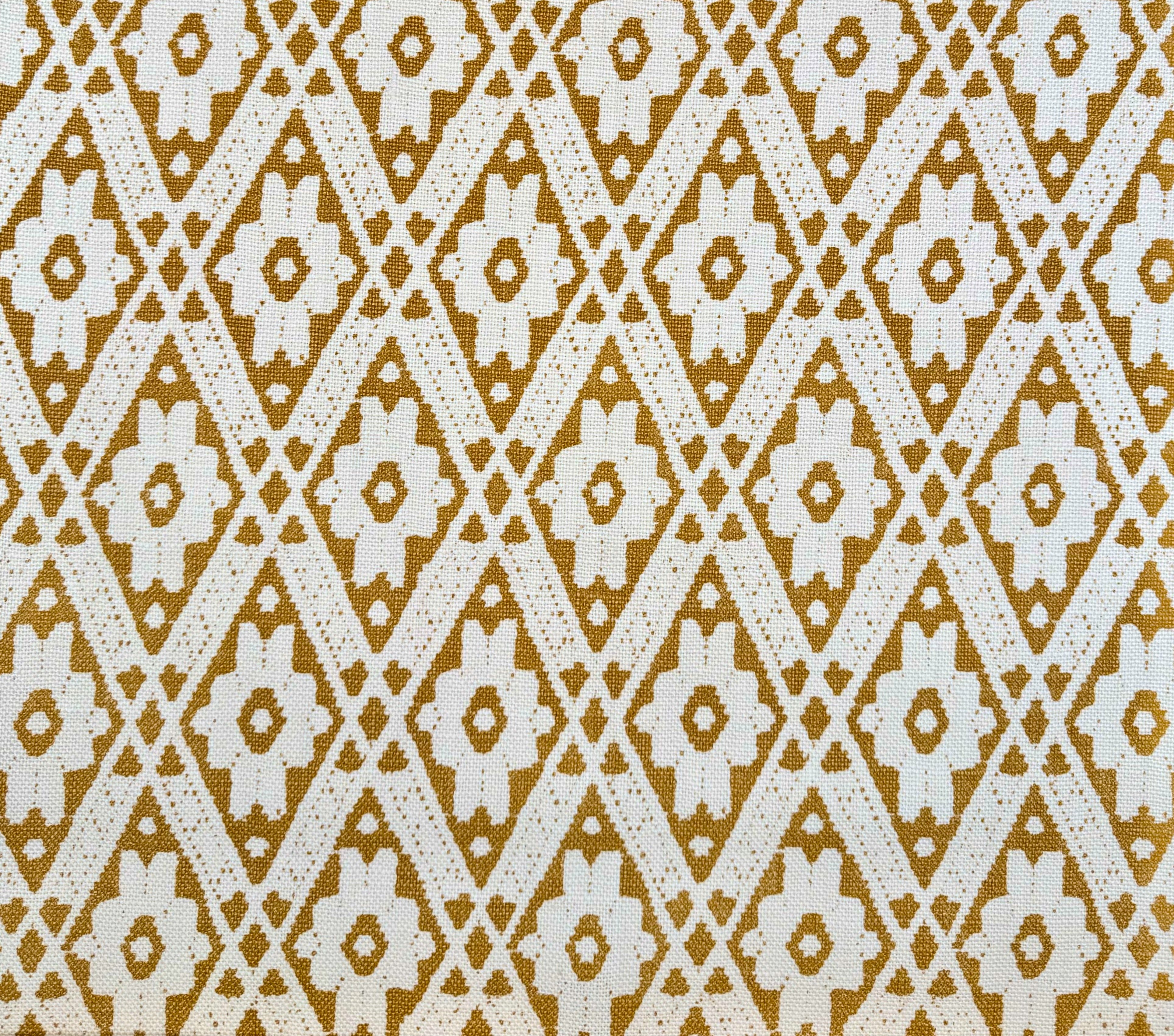 This version uses a soft camel tone over an oyster-hued linen basketweave, lending the pattern a mellow, sunbaked quality. It's gentler than gold, warmer than beige, and far more nuanced than it appears on screen.
