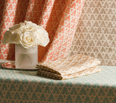 In this Camel-on-White sateen, Volpi shifts from witty sidekick to quiet conspirator. The warm camel ink feels like tobacco leather and old library bindings, softened by the slight sheen of the cotton ground. On a duvet, it reads as a field of tiny talismans; on curtains, it catches evening light the way playing cards catch lamplight on a green baize table. This is the colorway for guest rooms and city apartments that want to feel a little more like a timeless hotel suite - polished, composed, and just sly enough to reward anyone who looks twice.