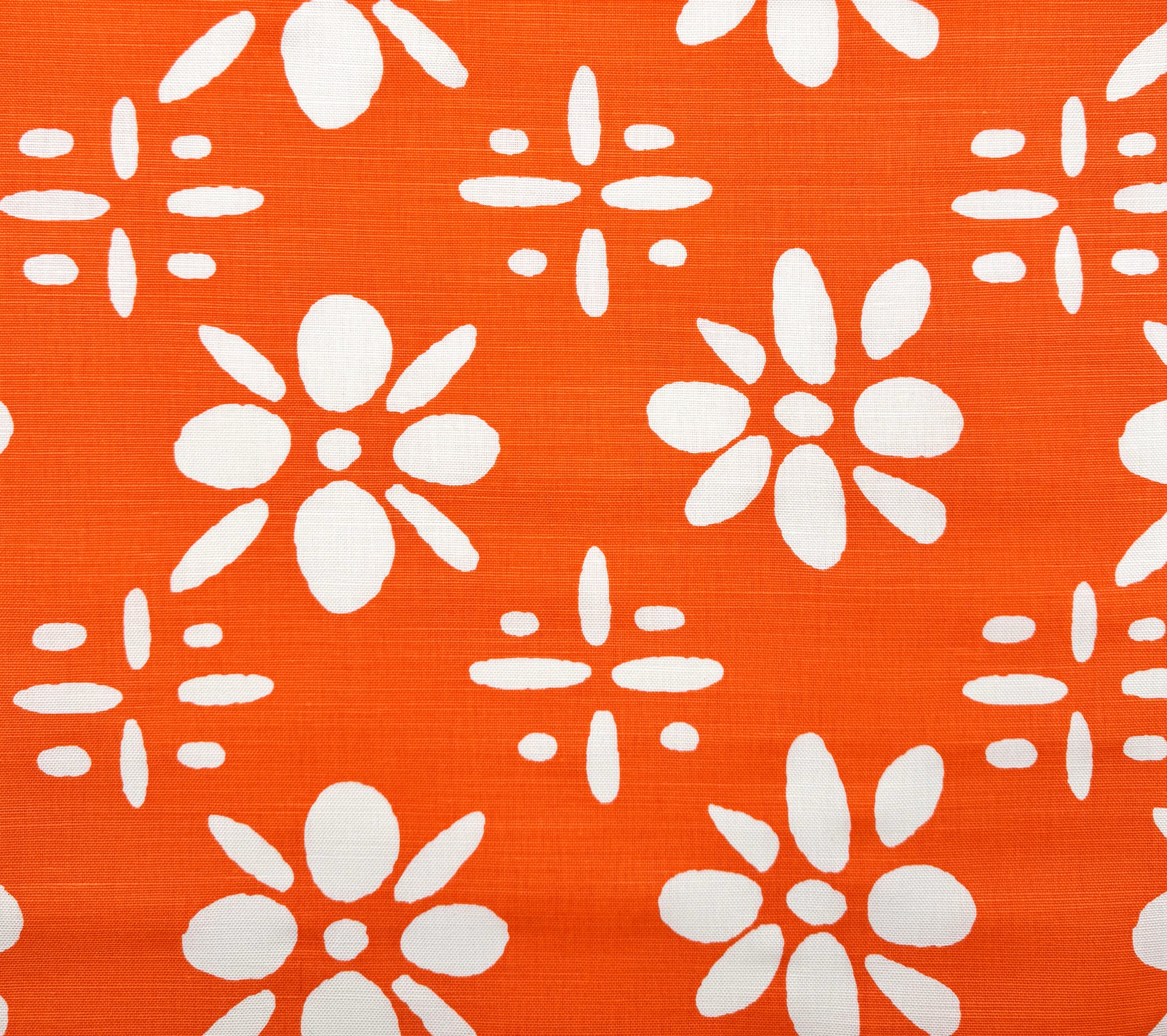 China Seas Fabric: Wildflowers Reverse - Orange on White Belgian Linen Cotton