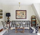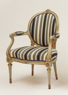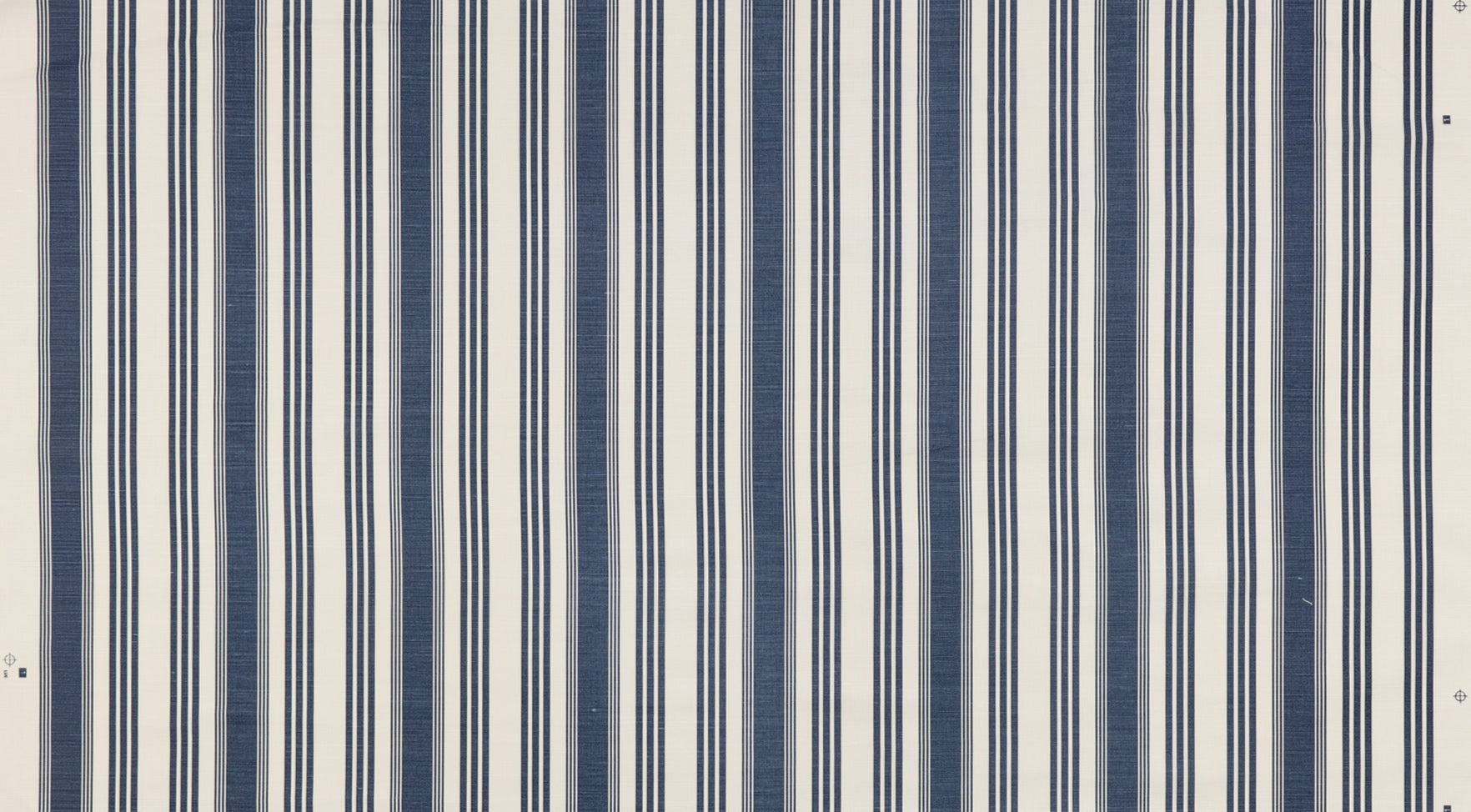 Quadrille Fabric: Lane Stripe - Custom Navy on Tinted Belgian Linen / Cotton