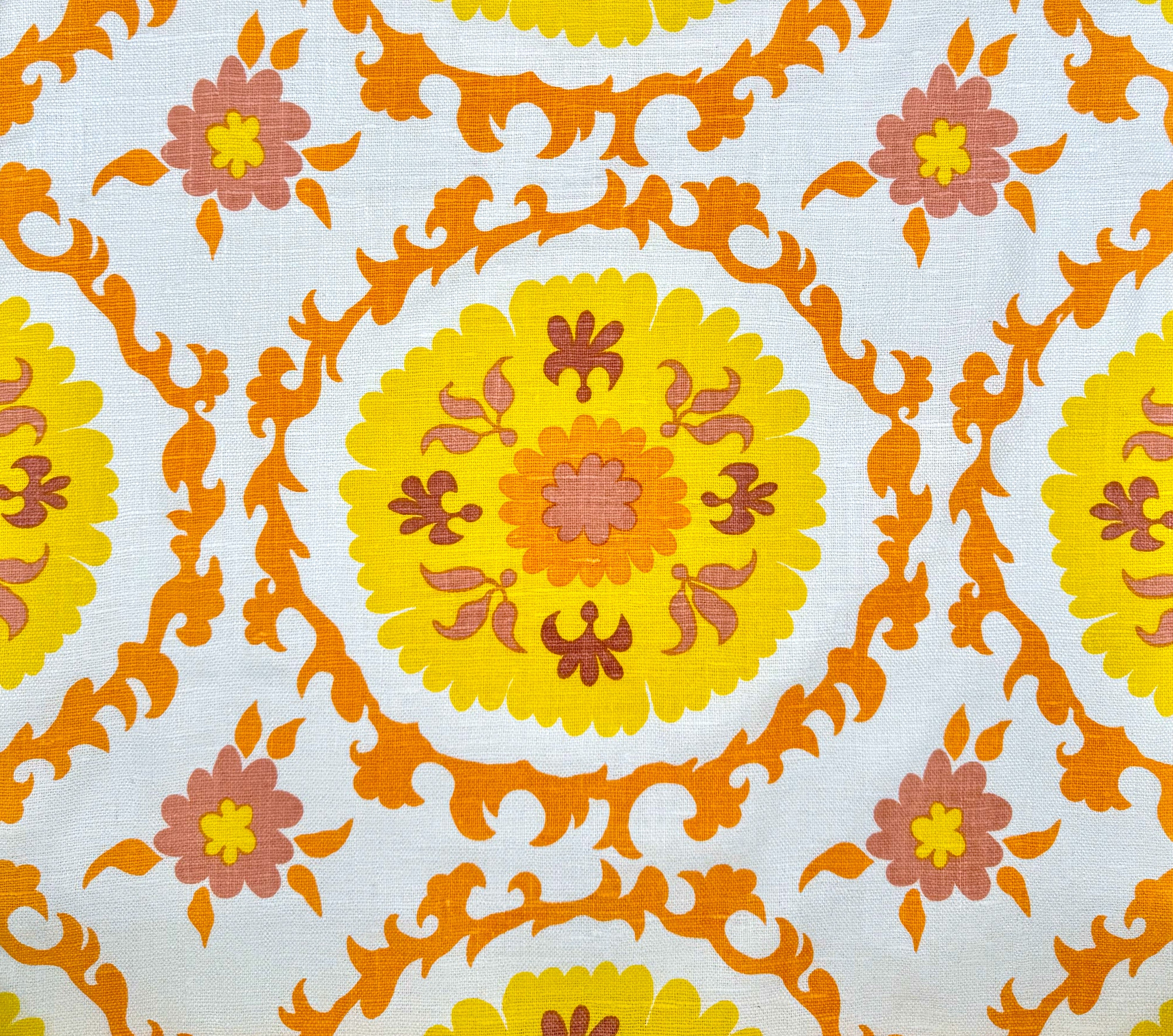 Quadrille Fabric: Suzani - Custom Yellow / Orange on Bleached 100% Silk Matka