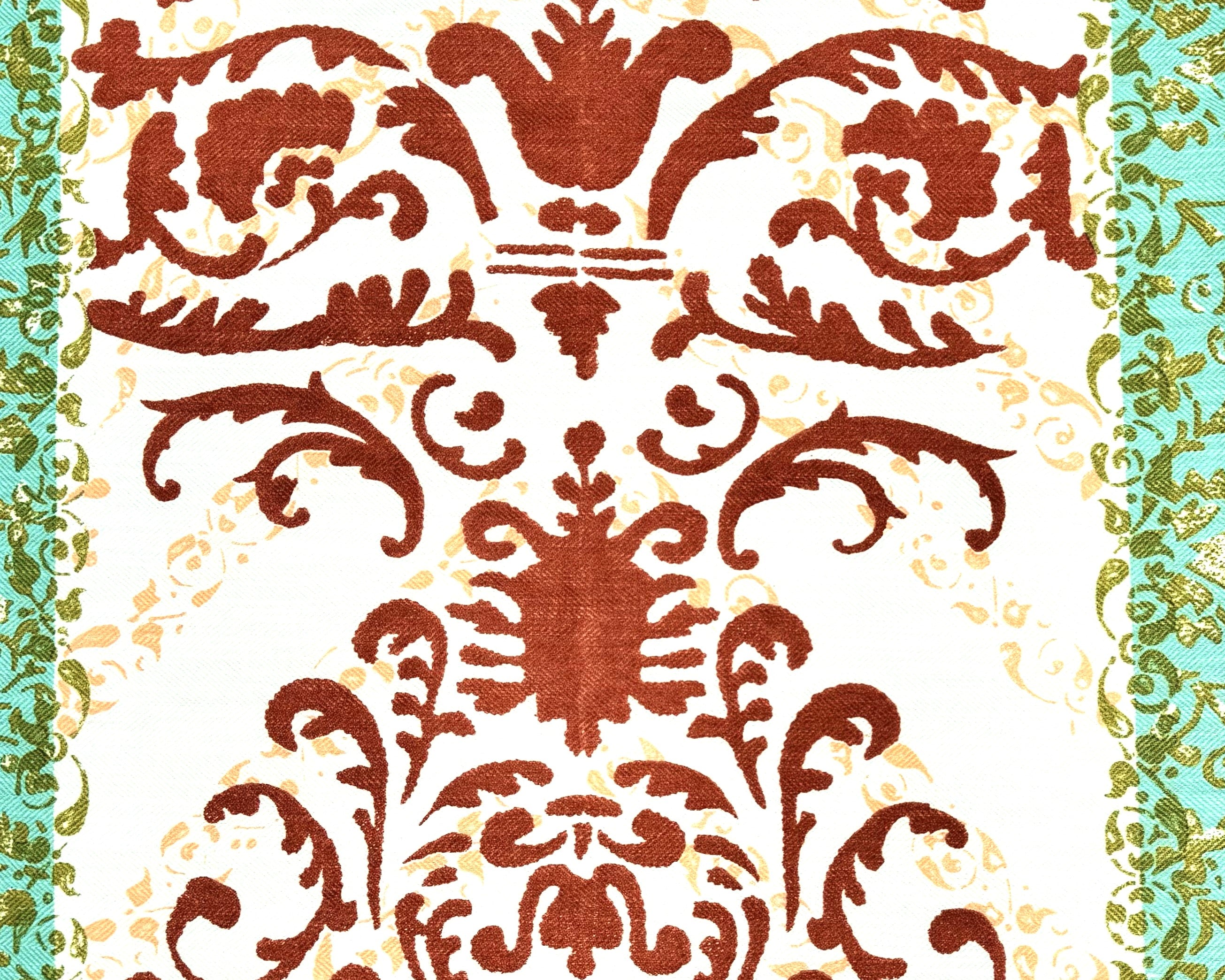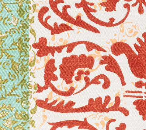 Quadrille Fabric: Tropical Damask - Custom Coral / Aqua / Green / Peach on Westover (Upholstery Weight)