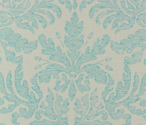 Quadrille Fabric: Sevilla Damask - Custom Turquoise on Tinted Belgian Linen / Cotton