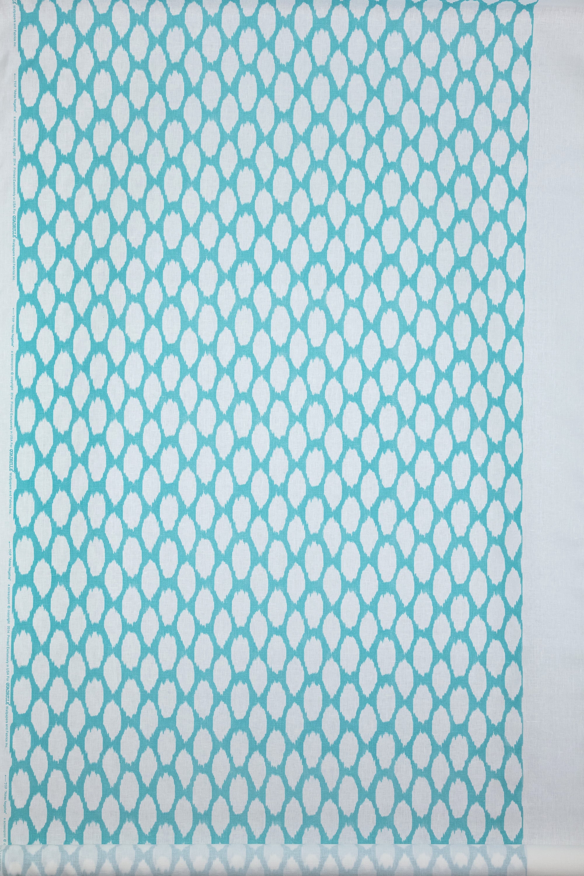 Quadrille Fabric: Ishim Ikat - Custom Turquoise on White 100% Linen