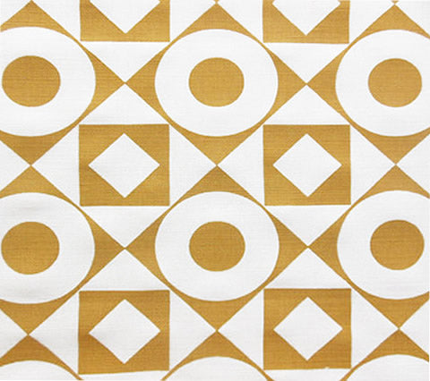 Home Couture Fabric: Circles & Squares Reverse - Custom Mustard on White Belgian Linen/Cotton