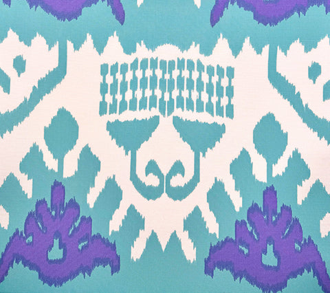 Quadrille Fabric: Kazak - Custom Brown / Aqua / Lilac on White Suncloth (OUTDOOR)