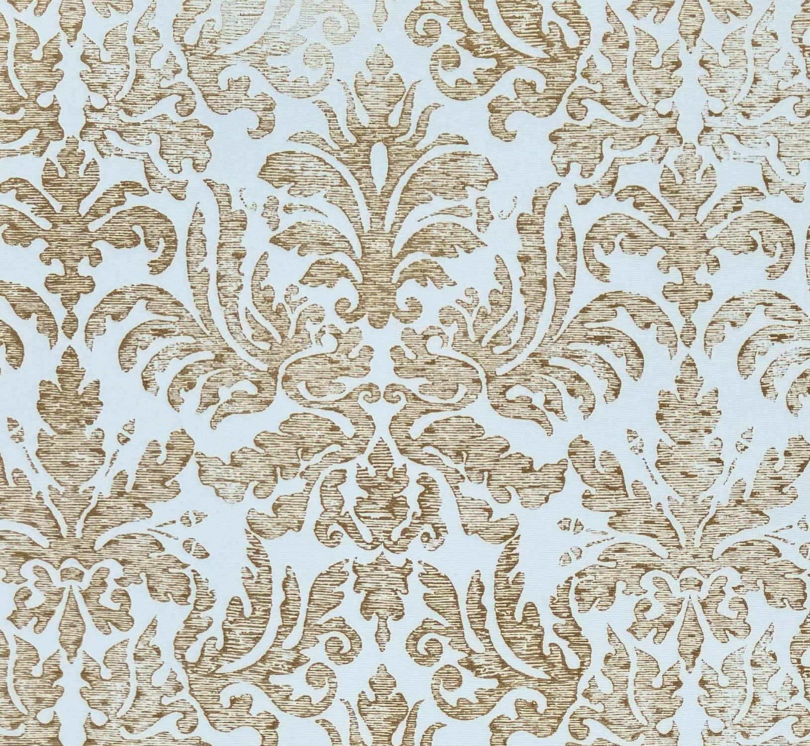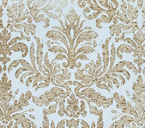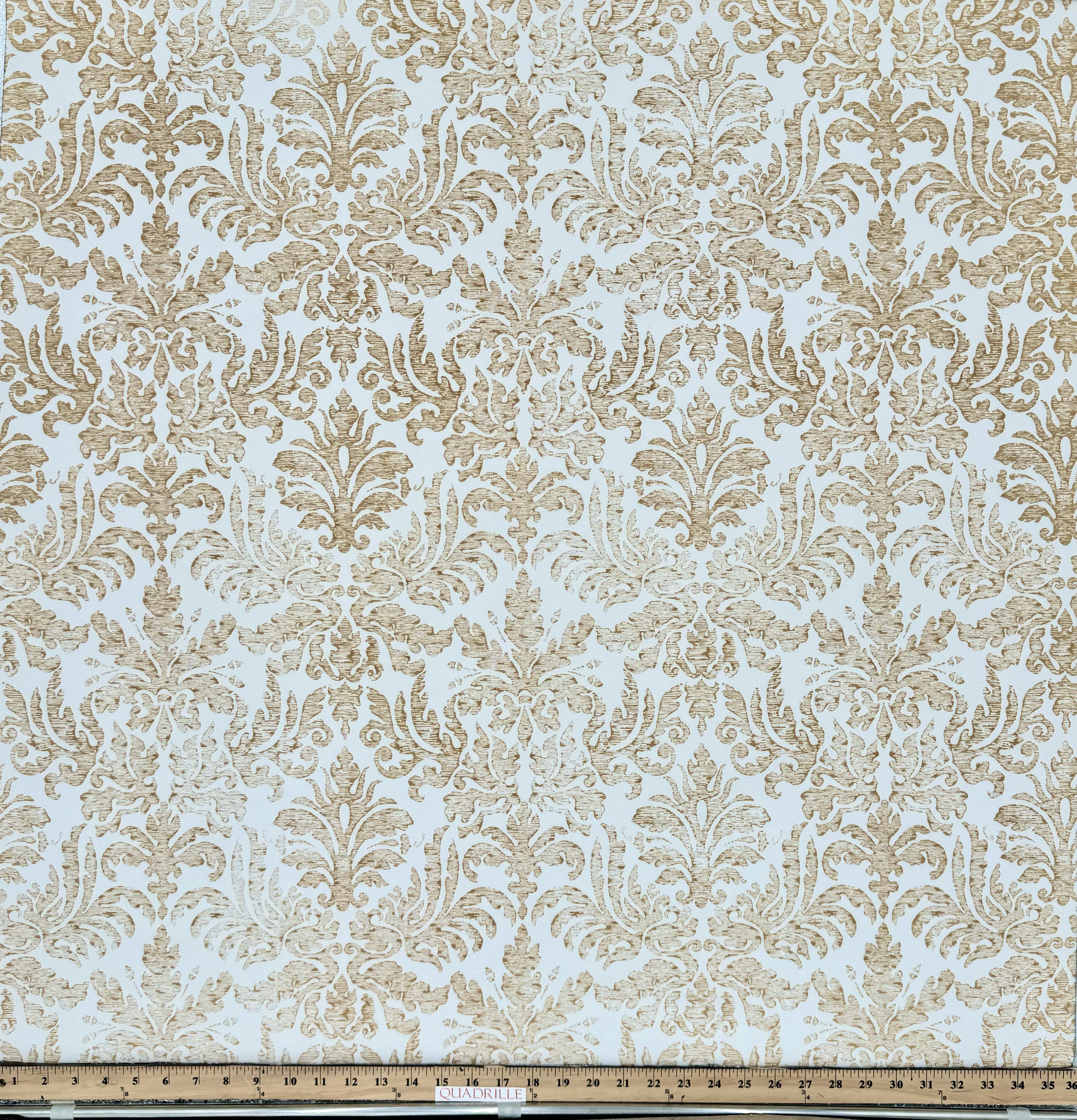Quadrille Fabric: Sevilla Damask - Custom Camel on White Suncloth (OUTDOOR)