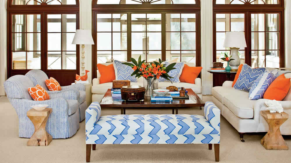 Alan Campbell Fabric: Montecito Zig Zag - Custom Mocha on Tinted Belgian Linen / Cotton