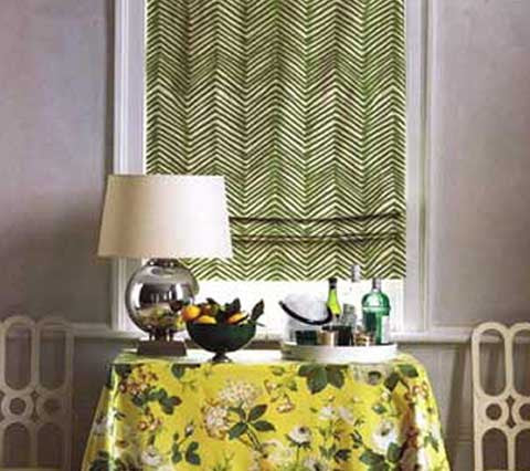 Alan Campbell Fabric: Zig Zag - Custom Green on Light Tinted Belgian Linen / Cotton