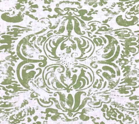 Quadrille Fabric: French Damask Reverse - Custom French Green on Tinted 100% Belgian Linen