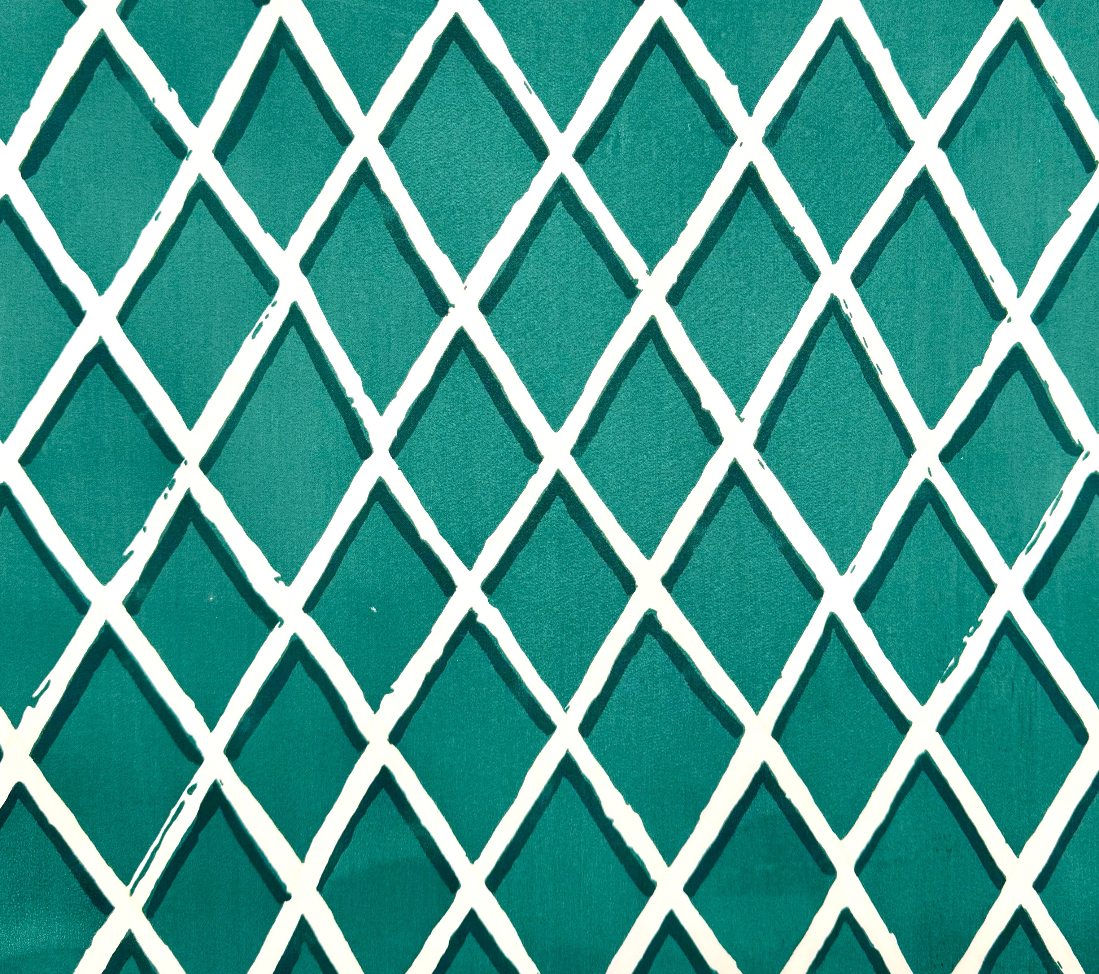 China Seas Fabric: New Diamond Trellis Large Scale - Custom Carriage Green on Tinted Cotton Sateen