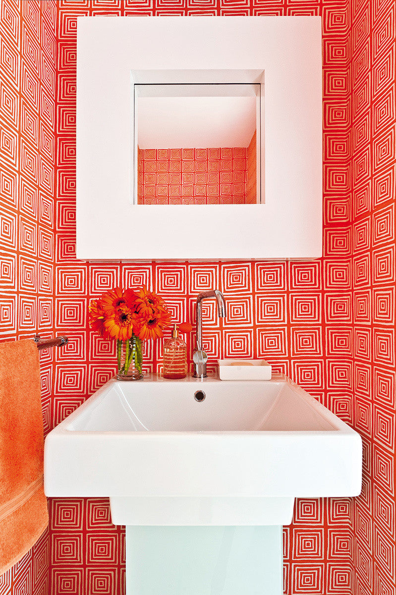 Quadrille Fabric: Brighton - Custom Orange on White Belgian Linen / Cotton