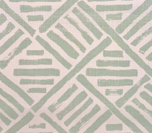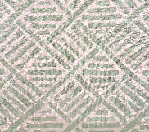 China Seas Fabric: Lyford Diamond Bamboo - Custom Jungle Green on White Belgian Linen / Cotton