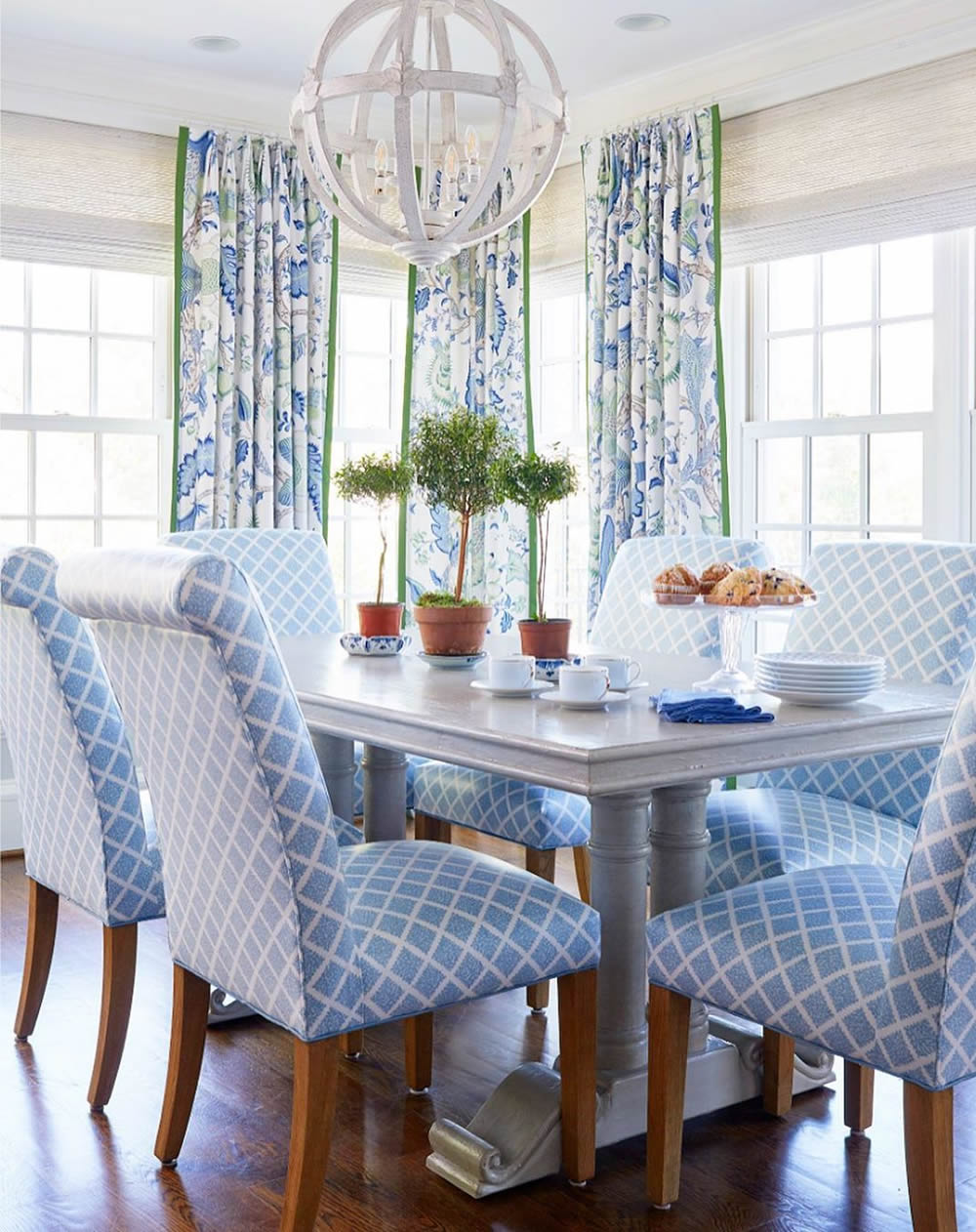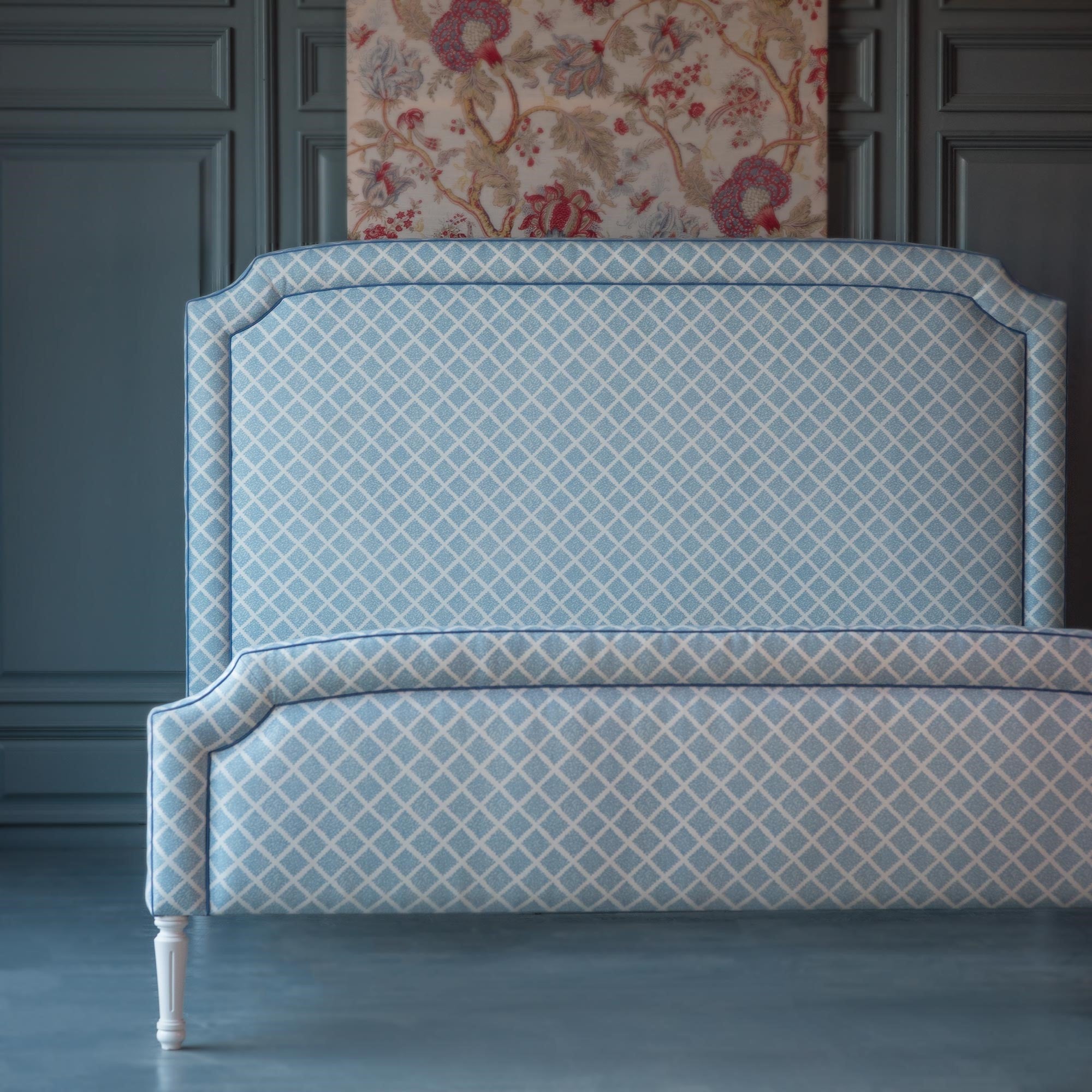 Quadrille Fabric: Terrace - Custom Venetian Blue on Tinted Linen / Cotton