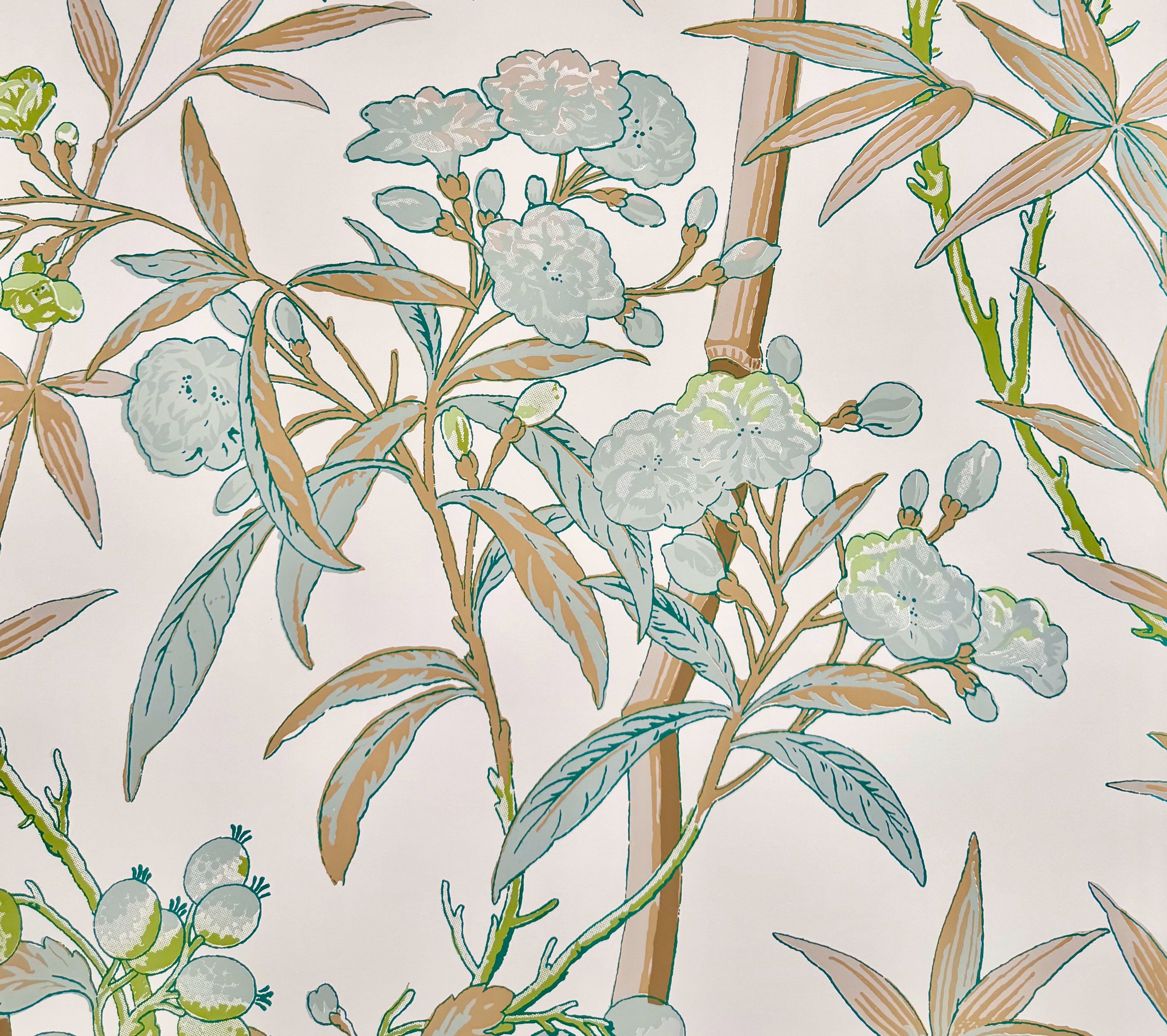 Quadrille Wallpaper: Enchanted Garden Bamboo - Custom Multi Green / Taupe (FIVE YARD MINIMUM)