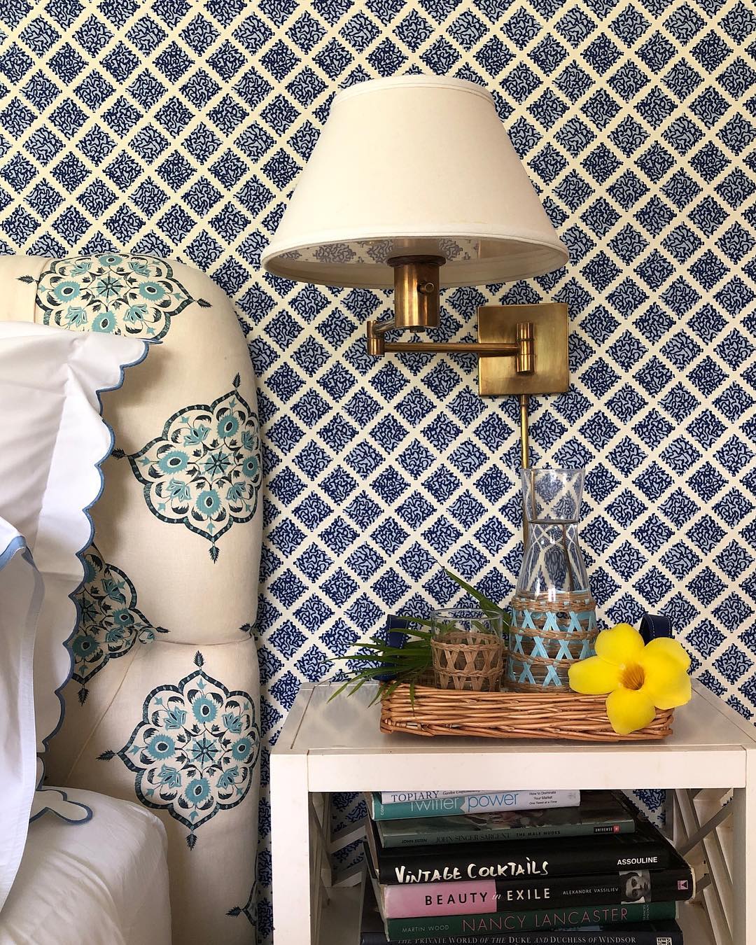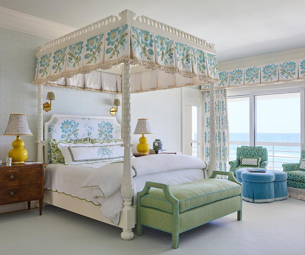 Quadrille Wallpaper: Charleston II - Custom Blue on White Paper (5 yard minimum)